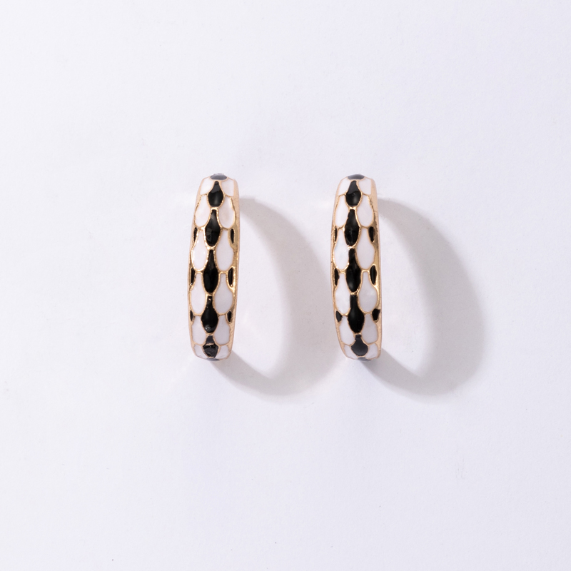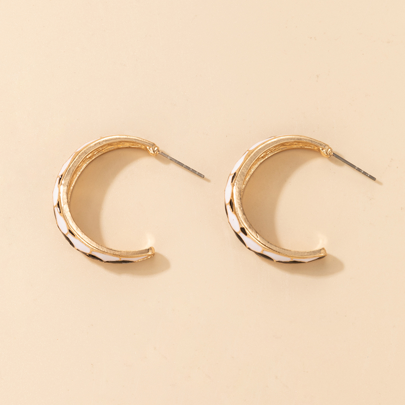 Fleepmart Elegant White Black Dropping Oil Hoop Earring for Women Fashion Geometry Semicircle Party Earring Female Jewelry
