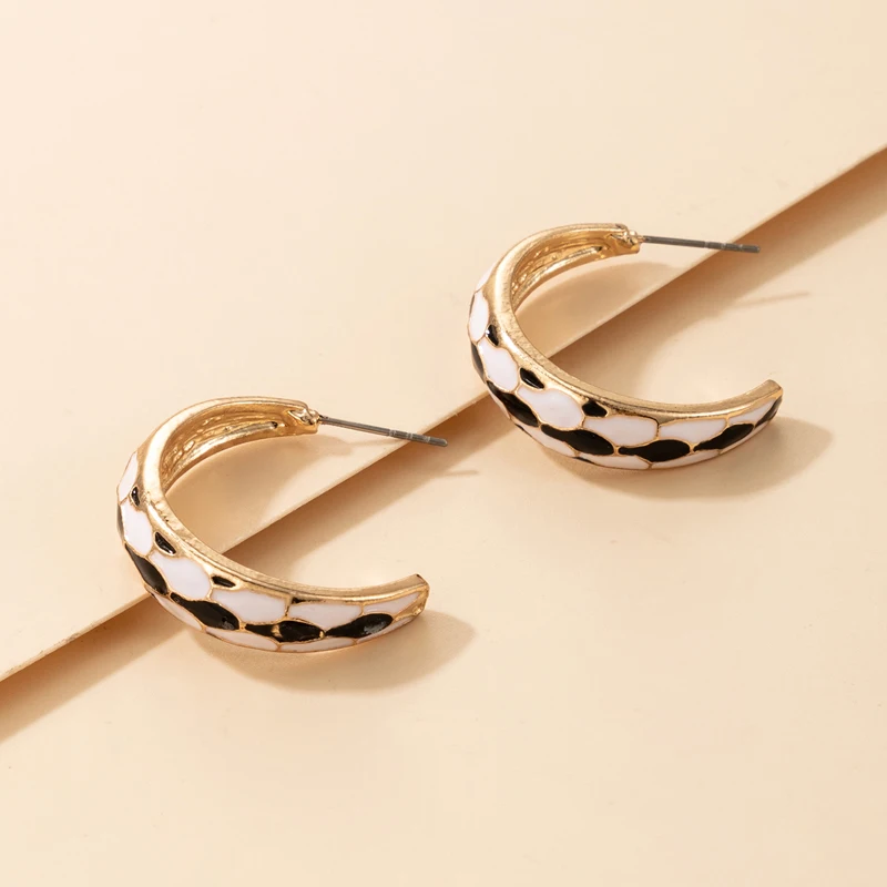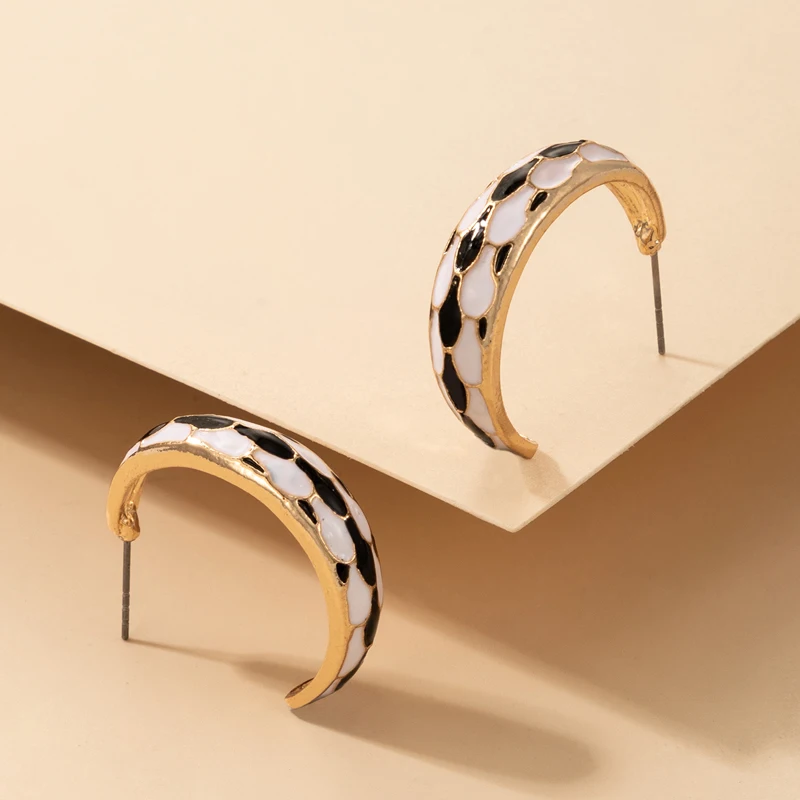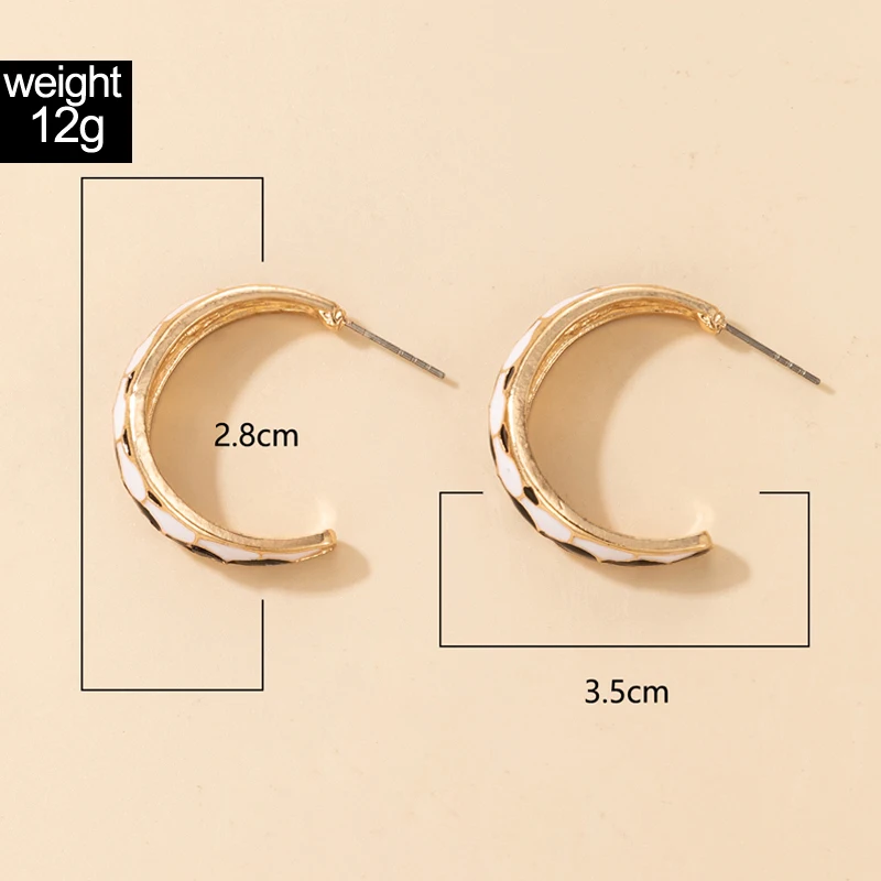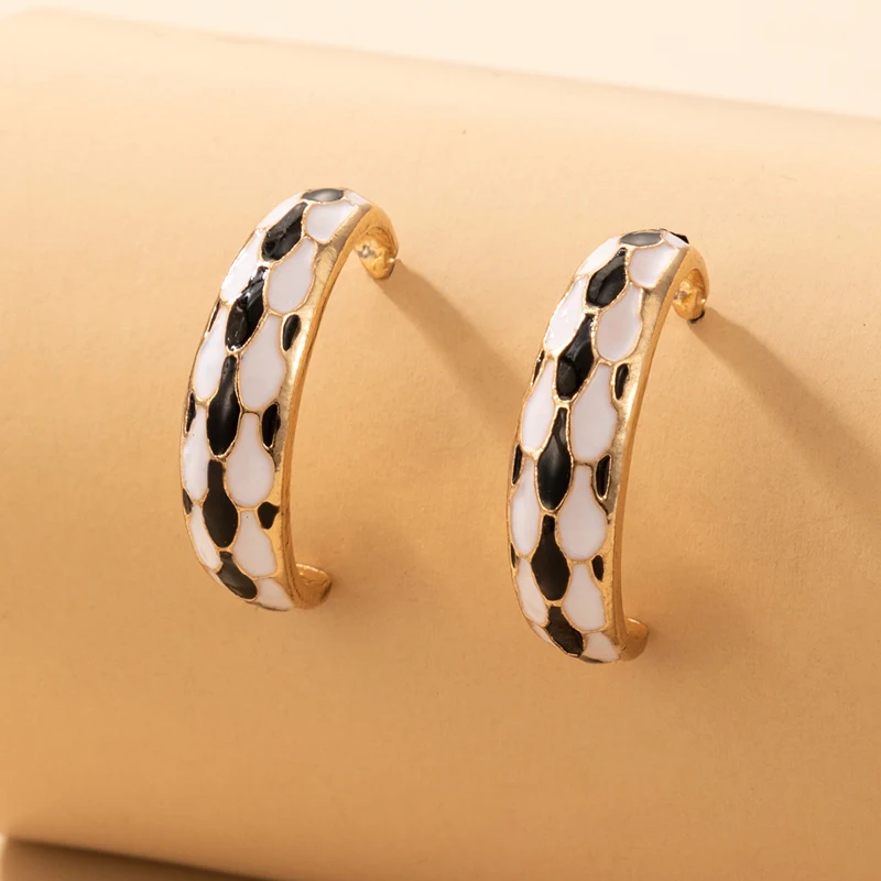 Fleepmart Elegant White Black Dropping Oil Hoop Earring for Women Fashion Geometry Semicircle Party Earring Female Jewelry
