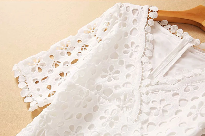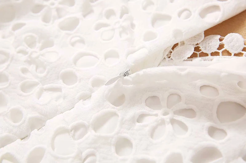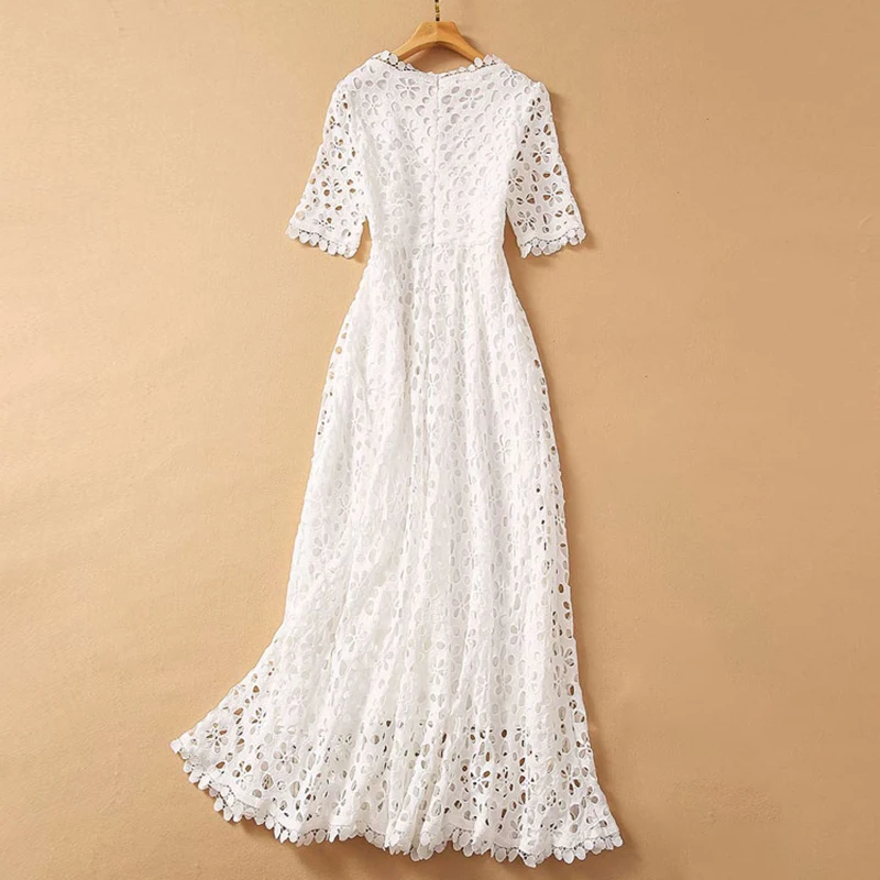 Fleepmart Elegant White Maxi Dress For Women V Neck Half Sleeve High Waist Hollow Out Slim Dresses Women 2021 Autumn New Style Fashion