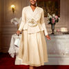 Fleepmart Elegant Women A Line Dress V Neck Long Sleeve 3D Flower Peplum Patchwork Mesh Wedding Guest Church Party Outfit Autumn New