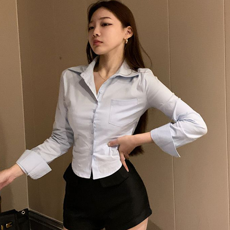 Fleepmart Elegant Women Korean Shirts Fashion Streetwear Female Slim Blouse Spring Y2K Casual Office Ladies Sexy Cropped Tops New