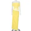 Fleepmart Elegant Yellow Holiday Beach Women Sexy Slash Neck Mesh Evening Folds Hollow Out Long Party Gowns