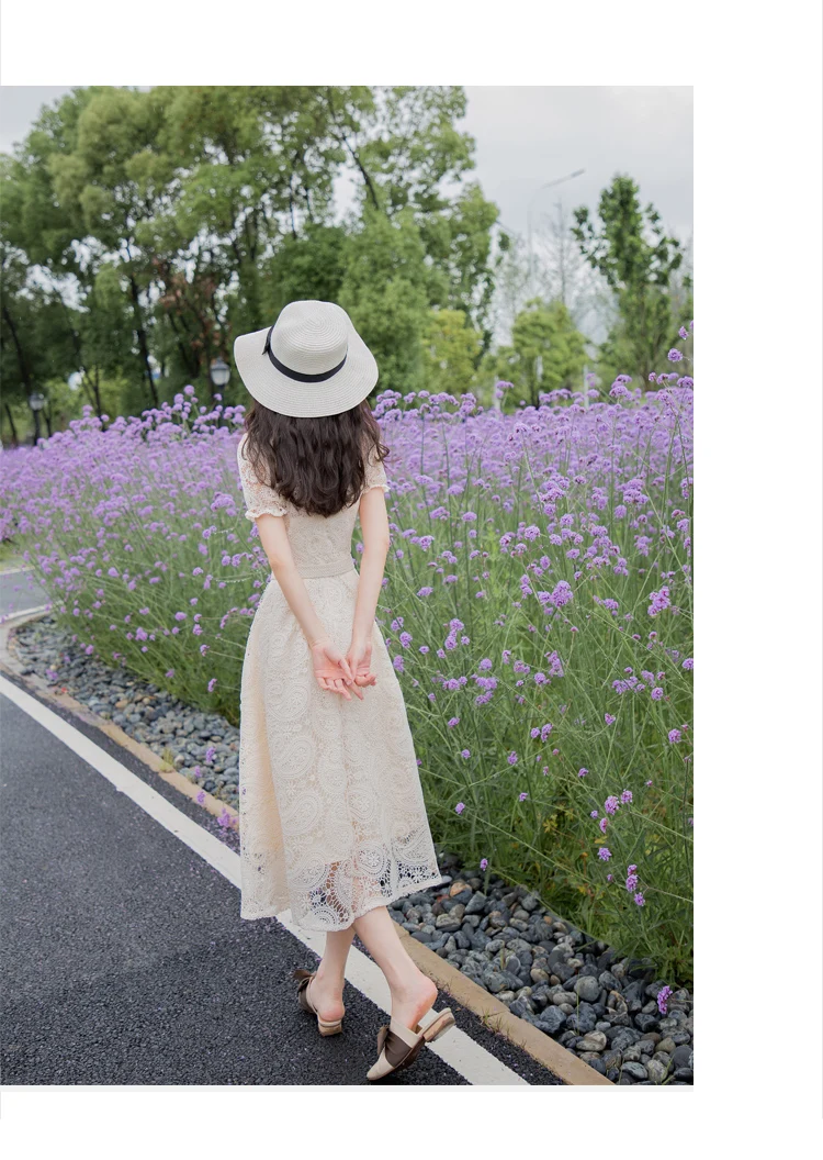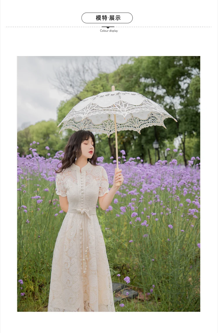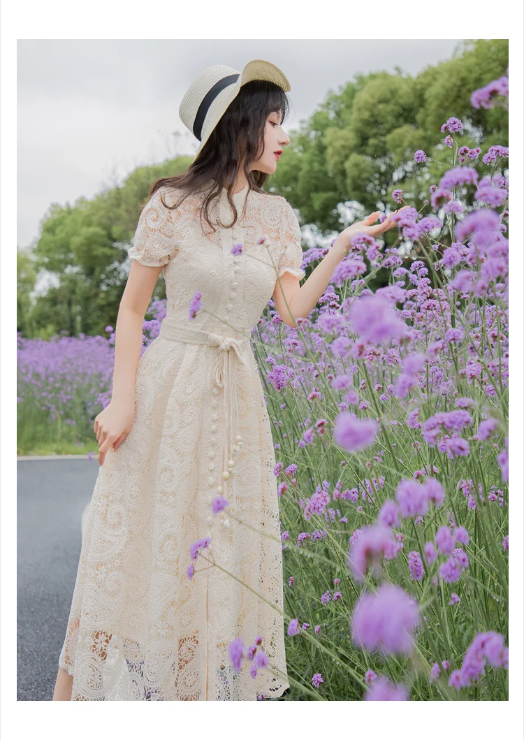 Fleepmart Embroidery 2021solid Belt Short Sleeve Vintage Sexy A-Line Print Elegant Mesh Summer Lace Boho Dresses Women Party Dress Floral