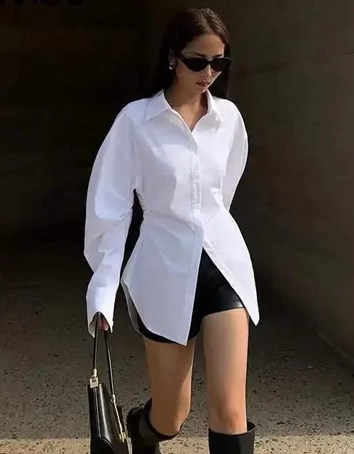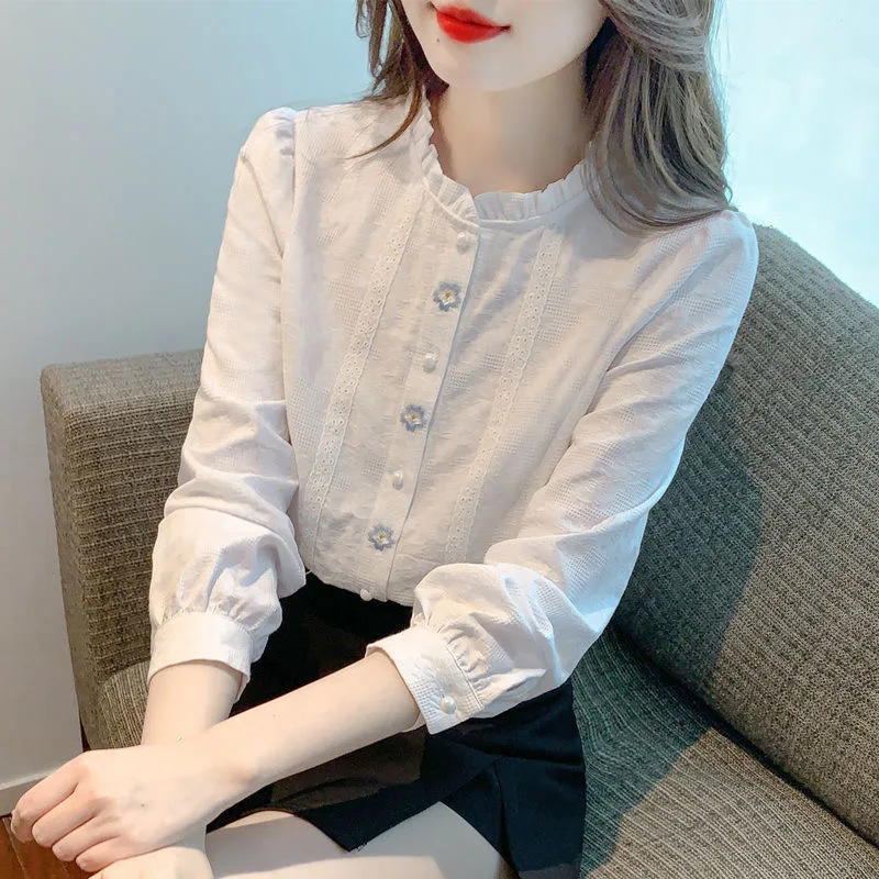 Fleepmart Embroidery Women Spring Autumn Blouses Shirts Lady Casual Long Sleeve Stand Collar Solid Color Tops