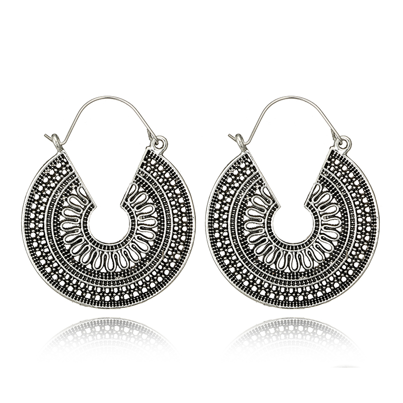 Fleepmart Ethnic Indian Tribal Carve Mandala Flower Drop Dangle Earring for Women Vintage Boho Silver color Earrings Brincos