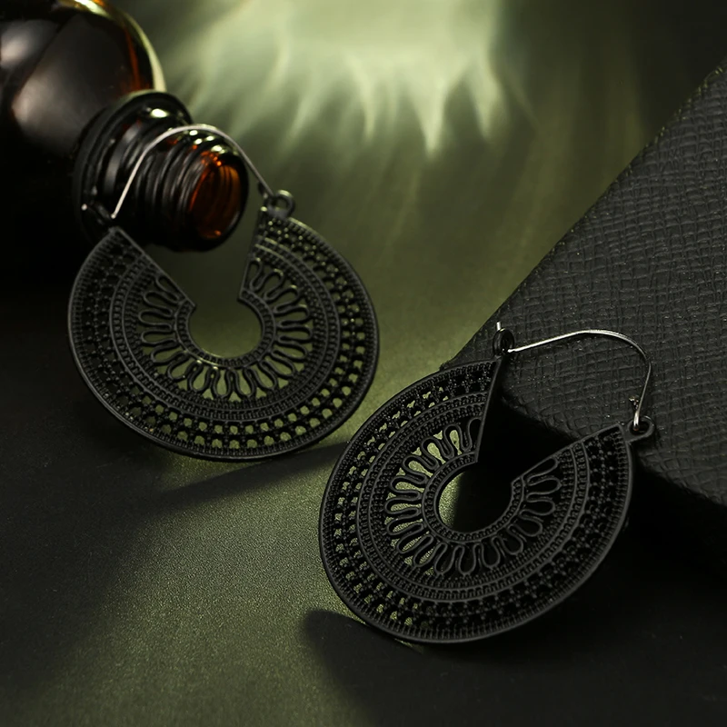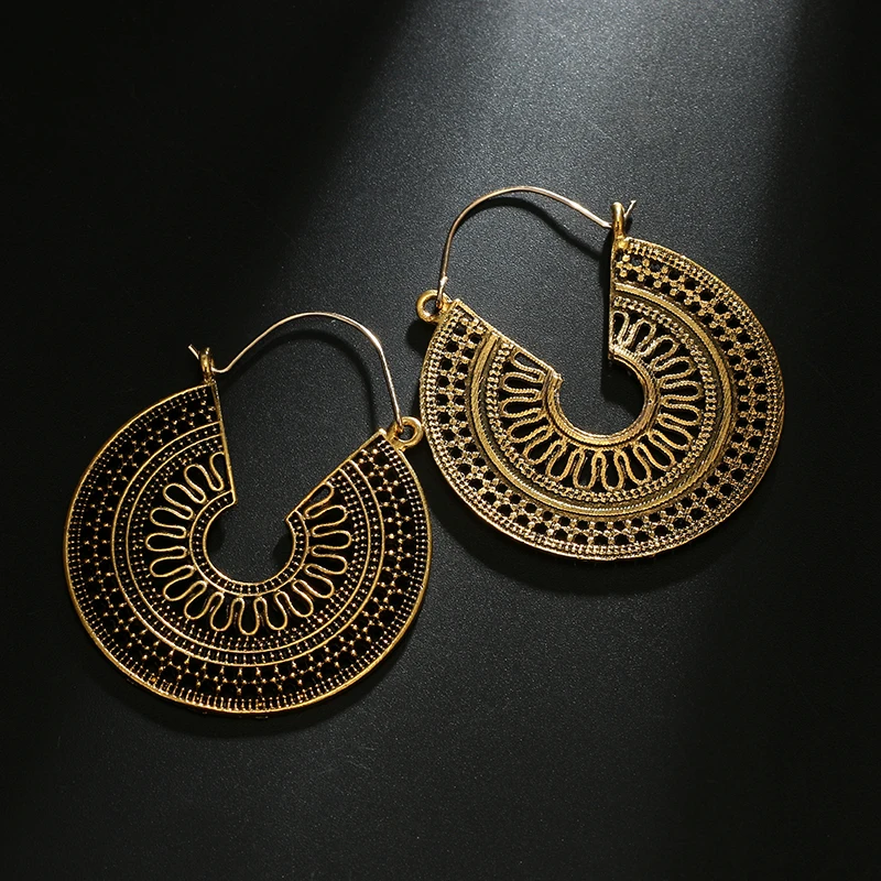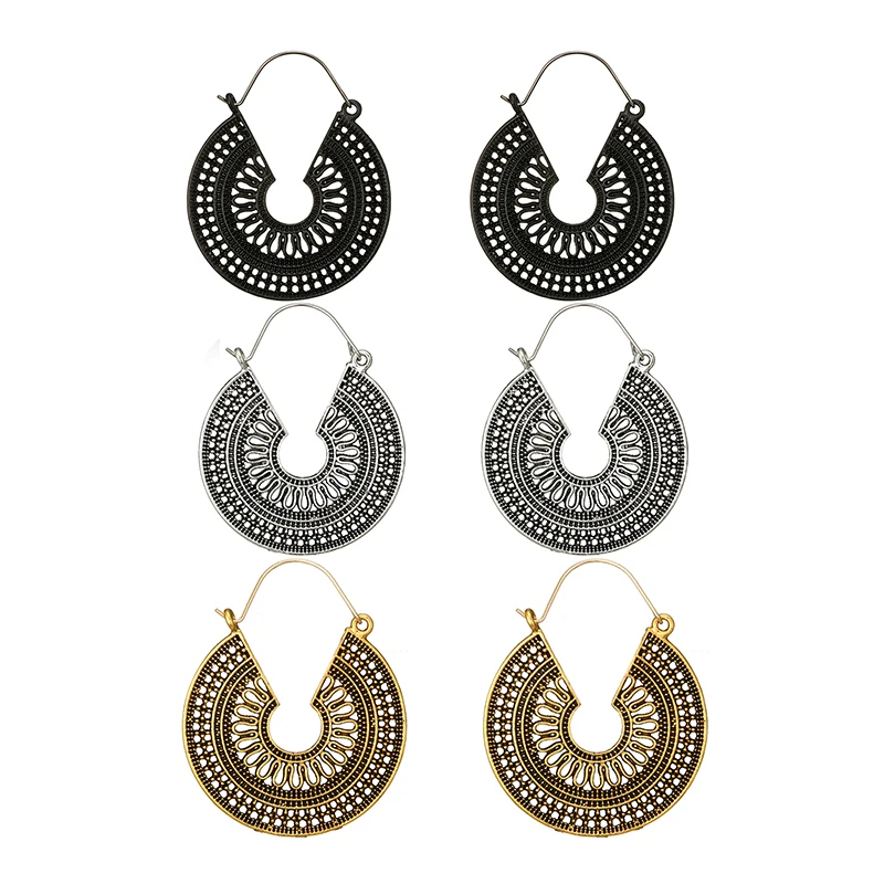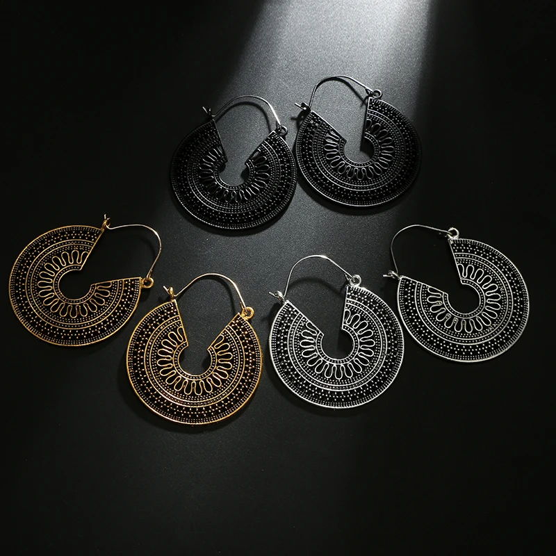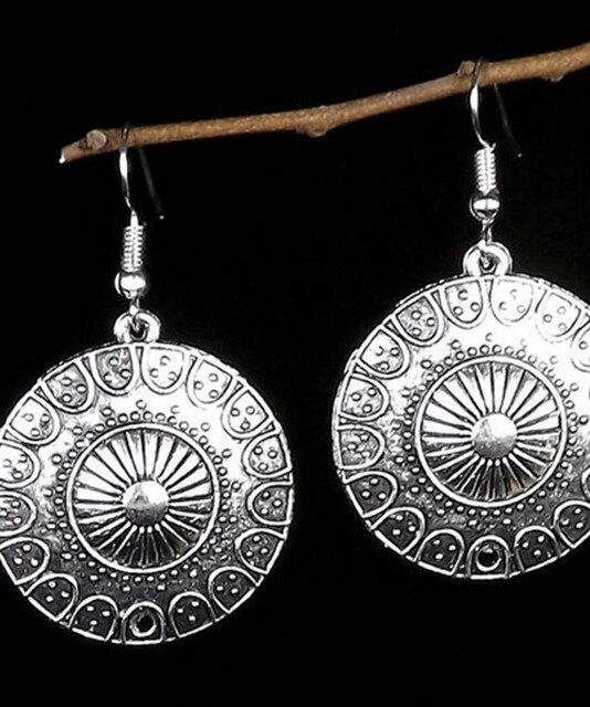 Fleepmart Ethnic Indian Tribal Carve Mandala Flower Drop Dangle Earring for Women Vintage Boho Silver color Earrings Brincos