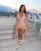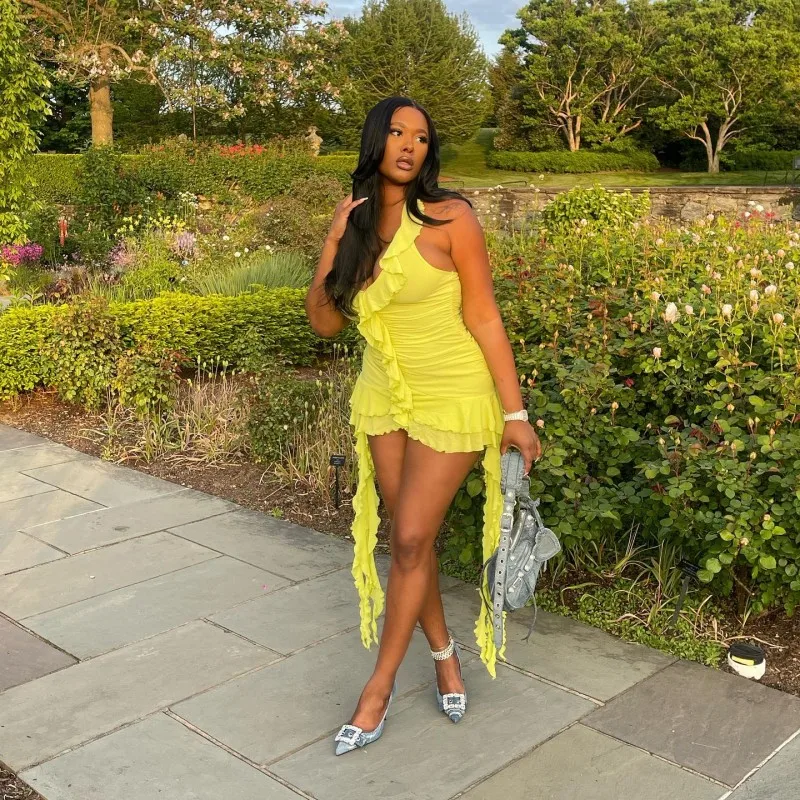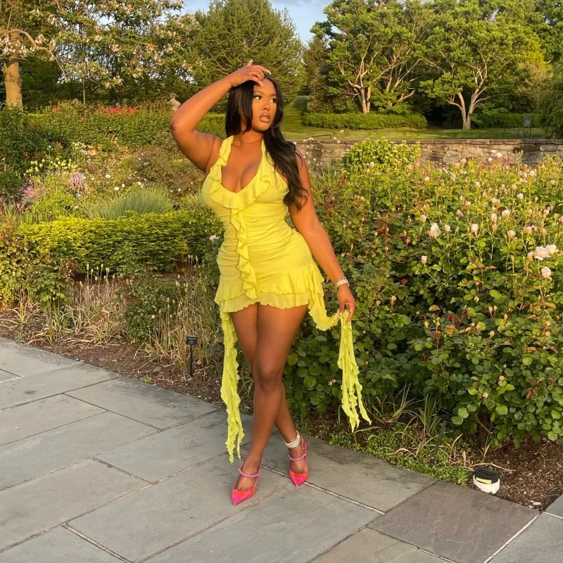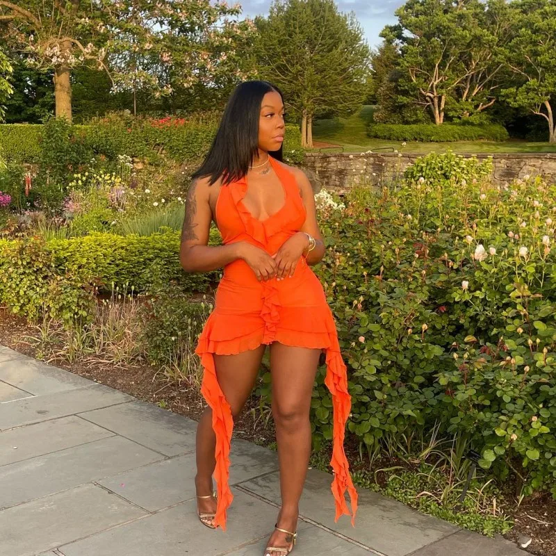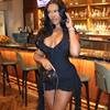 Fleepmart European and American 2024 Summer New Solid Color Sleeveless Low Collar Black Fungal Edge Irregular Hip Wrapping Short Dress