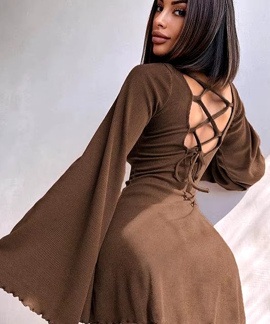 Fleepmart European and American Cross border 2024 Summer New Solid Color Skirt Hanging Neck Strap High Waist Slimming Short Dress