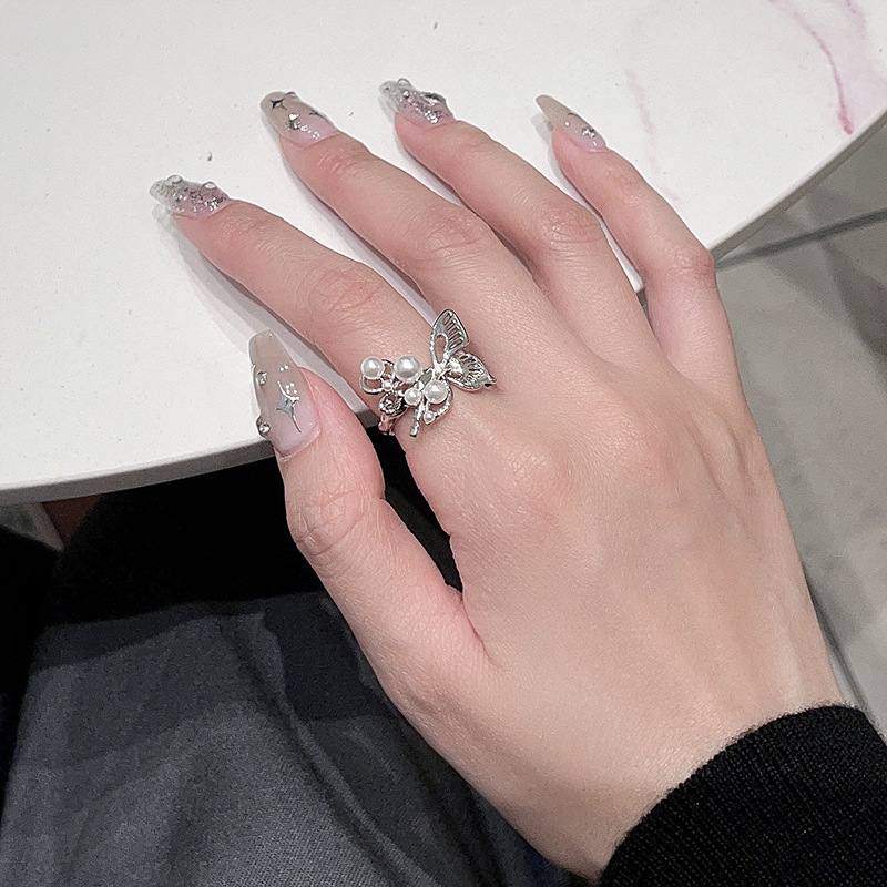 Fleepmart European and American Sliver Color Pearl Butterfly Open Rings For Women Adjustable Finger Rings Wedding Statement Jewelry BijouxFleepmart European and American Sliver Color Pearl Butterfly Open Rings For Women Adjustable Finger Rings Wedding Statement Jewelry Bijoux