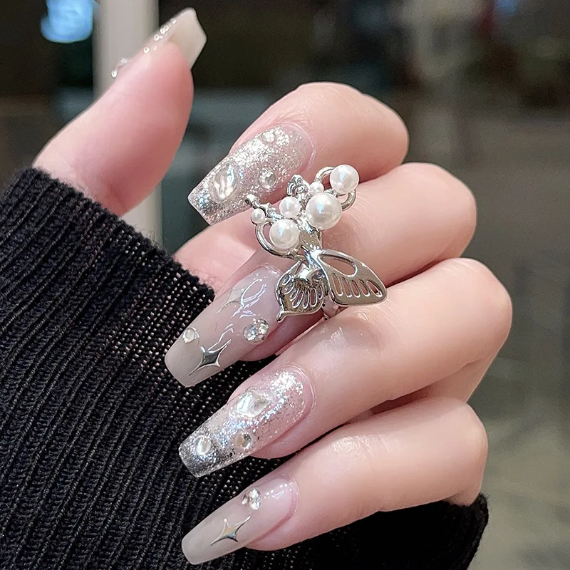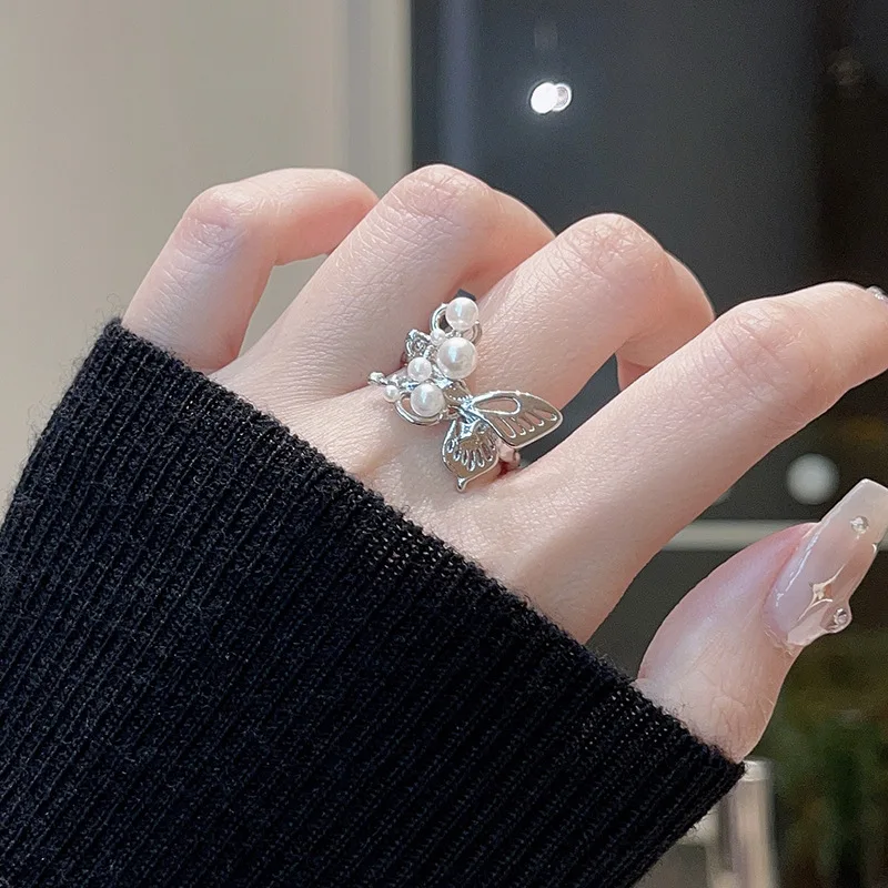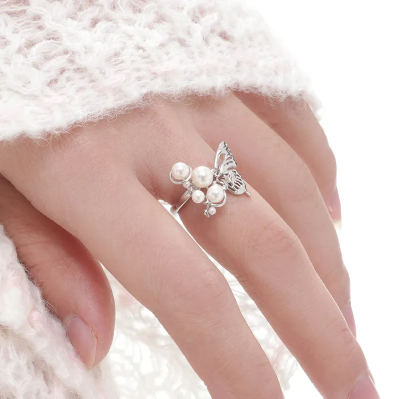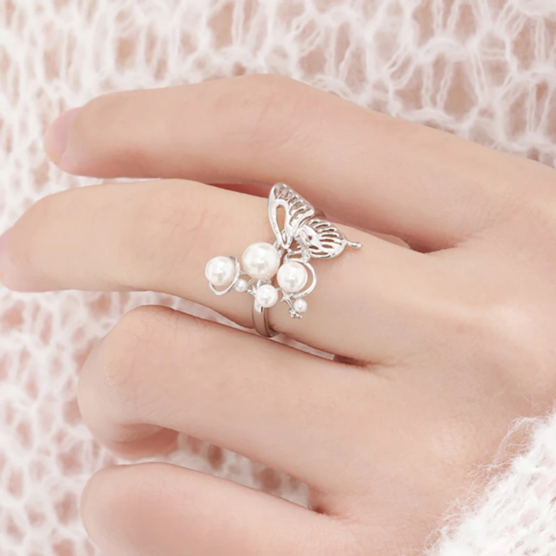 Fleepmart European and American Sliver Color Pearl Butterfly Open Rings For Women Adjustable Finger Rings Wedding Statement Jewelry Bijoux