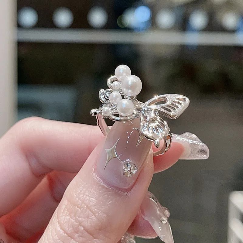 Fleepmart European and American Sliver Color Pearl Butterfly Open Rings For Women Adjustable Finger Rings Wedding Statement Jewelry BijouxFleepmart European and American Sliver Color Pearl Butterfly Open Rings For Women Adjustable Finger Rings Wedding Statement Jewelry Bijoux