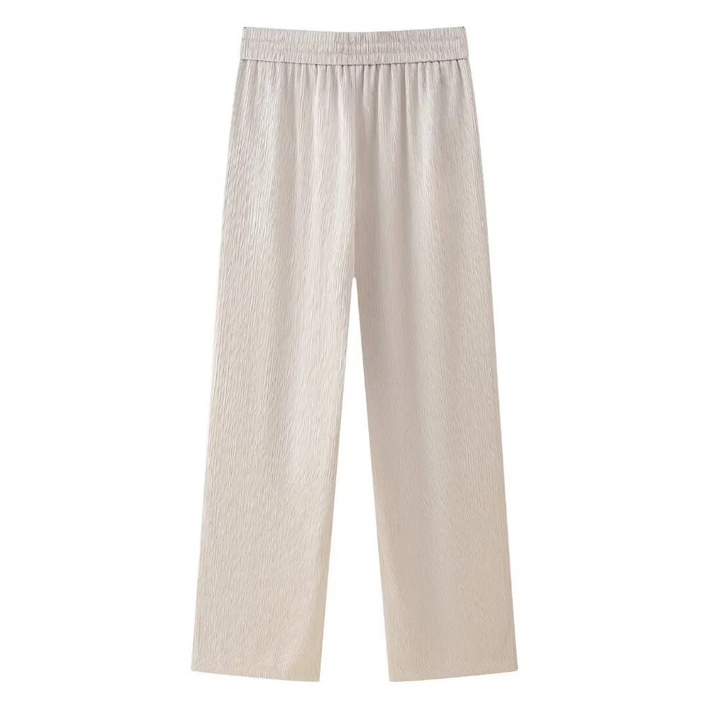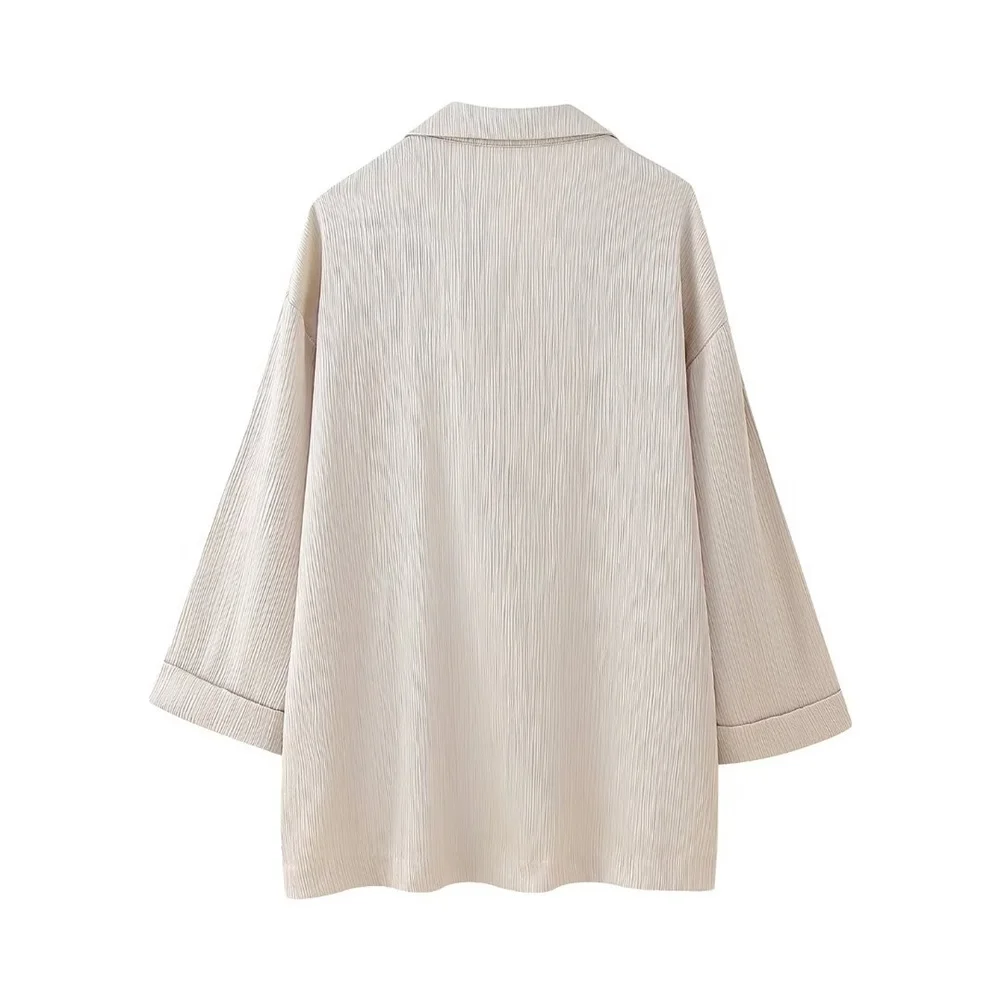 Fleepmart European and American Style 2025 Spring and Summer New Women’s Clothing Wrinkle Effect Double Breasted Suit Jacket Pants Set