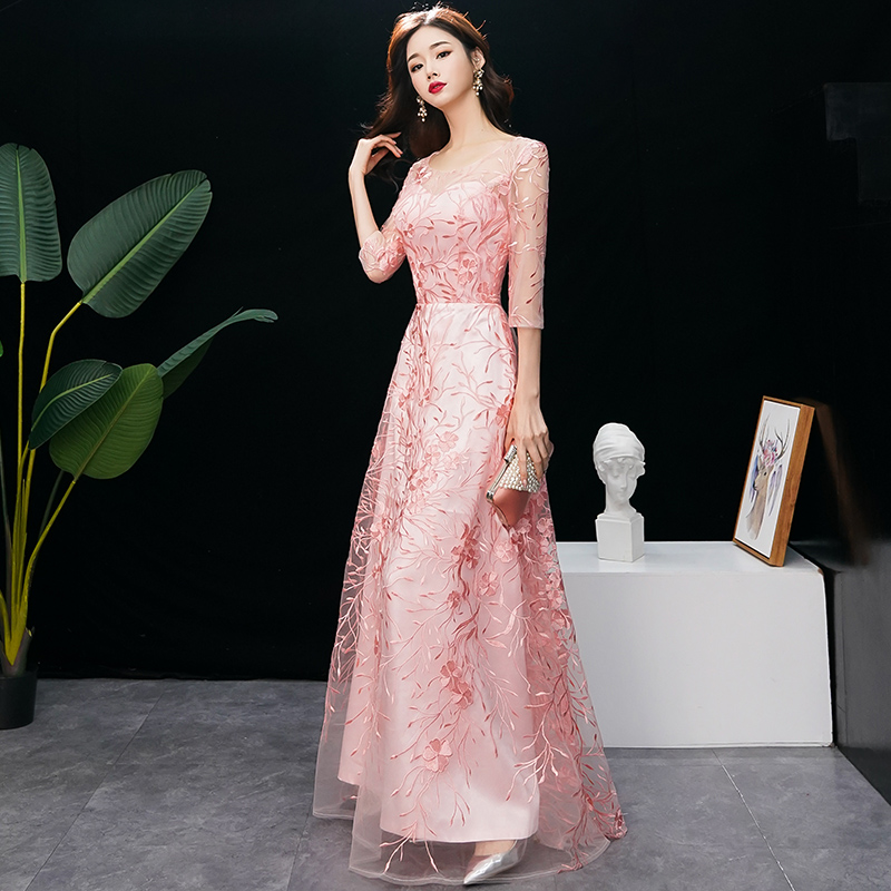 t’s Yiiya Evening Dress O-neck Embroidery Evening Dresses Pink Plus Size LF176 Formal Gowns Long Half Sleeve robe de soiree