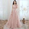 Fleepmart Evening Dresses Cameo Illusion Appliques Pleat O-neck Short Sleeves A-line Floor-length Plus size Customized Formal Dress