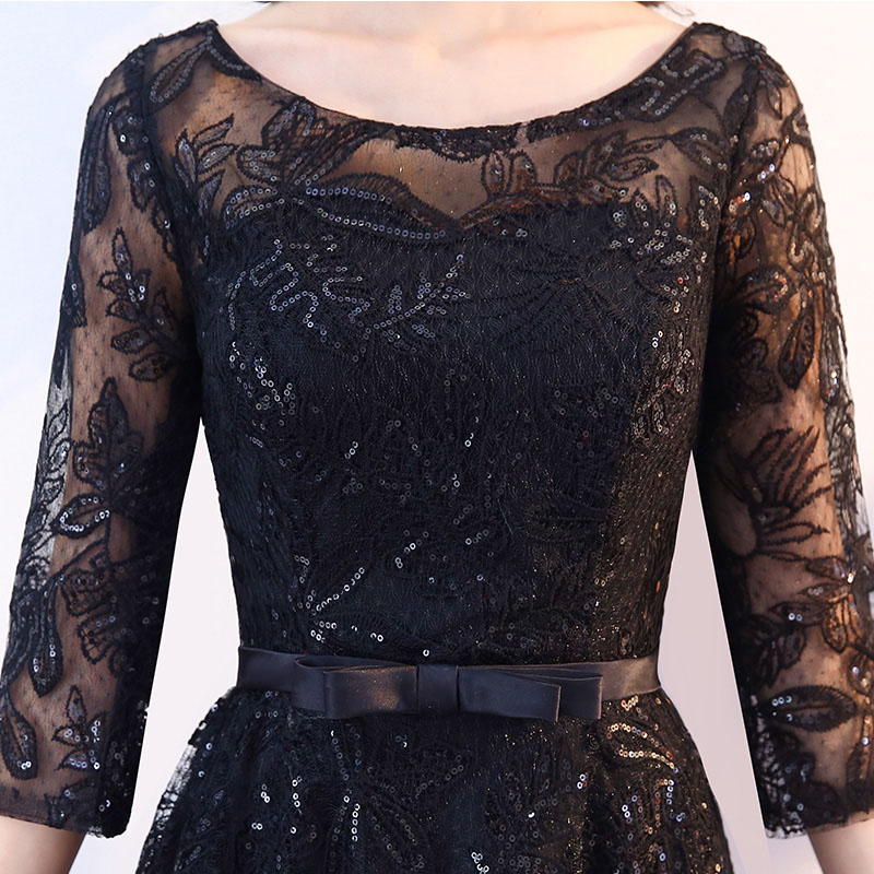 Fleepmart Evening Dresses New Fashion Elegant Formal Sequin Lace Black Vintage A-line Half Floor-length Plus Size Prom Gown