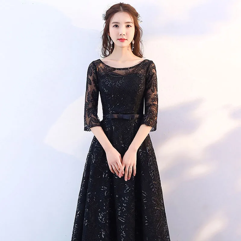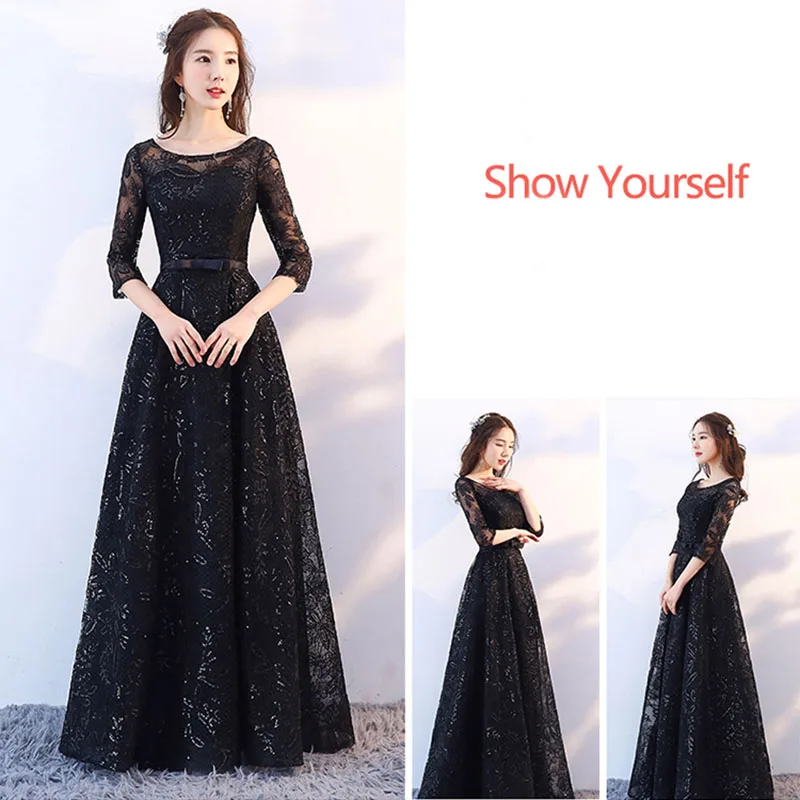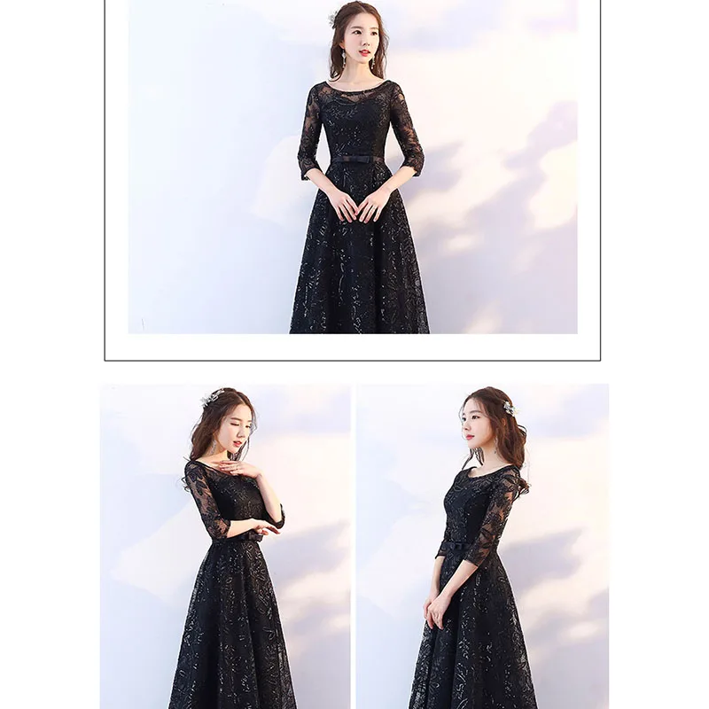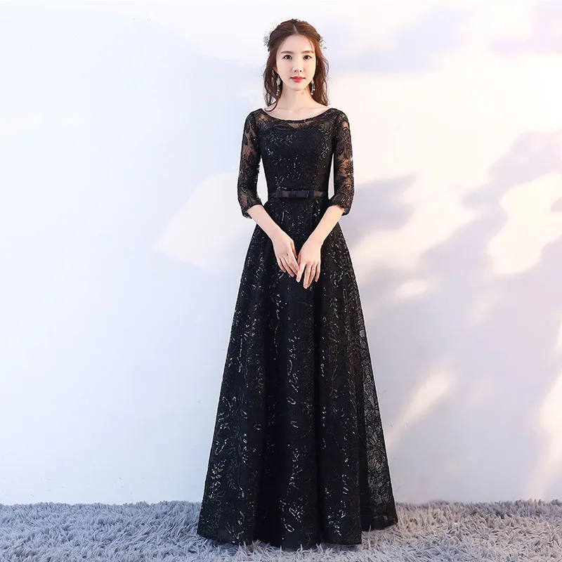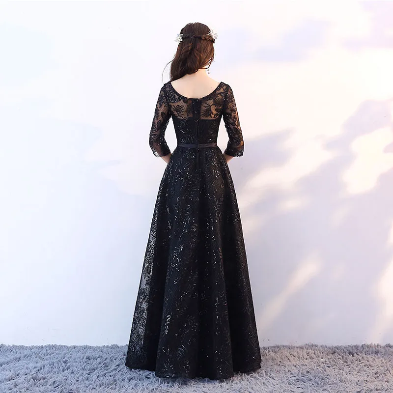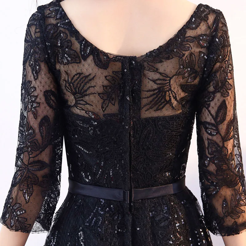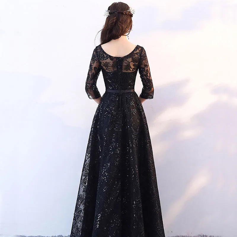 Fleepmart Evening Dresses New Fashion Elegant Formal Sequin Lace Black Vintage A-line Half Floor-length Plus Size Prom Gown
