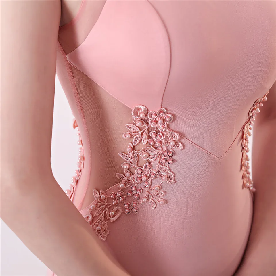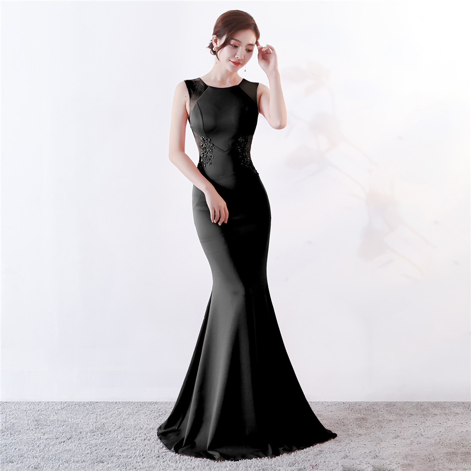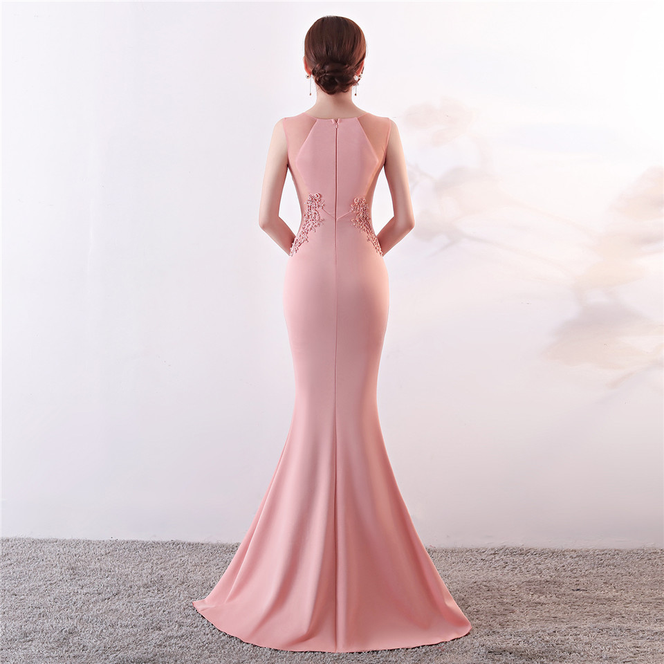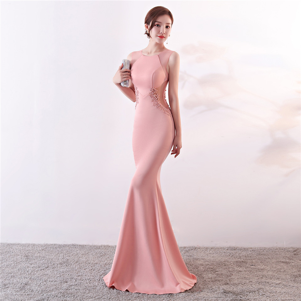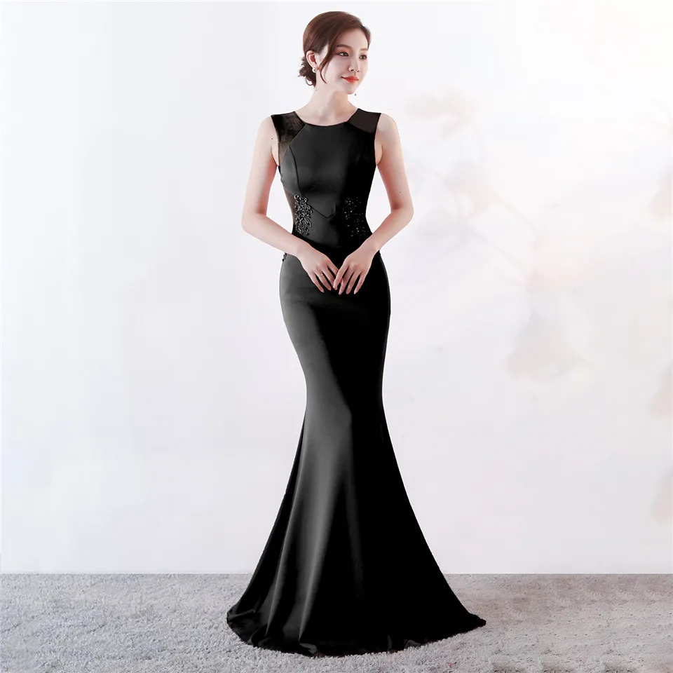 Fleepmart Evening Dresses Royal O-neck Sleeveless Pearls Party gown Elegant Embroidery zipper back long Trumpet Prom dress