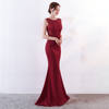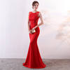 Fleepmart Evening Dresses Royal O-neck Sleeveless Pearls Party gown Elegant Embroidery zipper back long Trumpet Prom dress