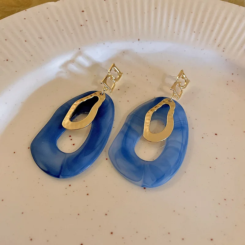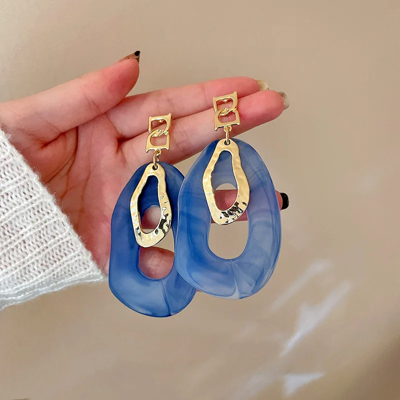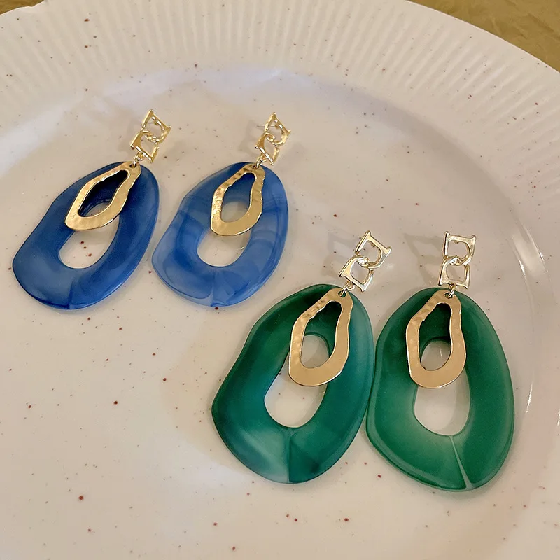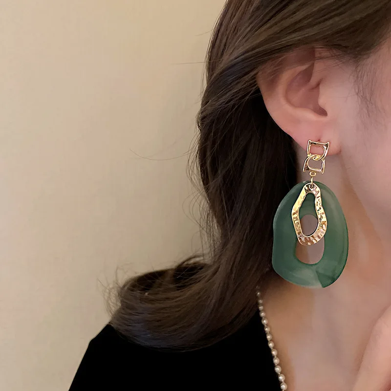 Fleepmart Exaggerated Acrylic Geometric Dangle Drop Earrings For Women 2022 Trendy Green Blue Color Statement Earring Party Jewelry Gift