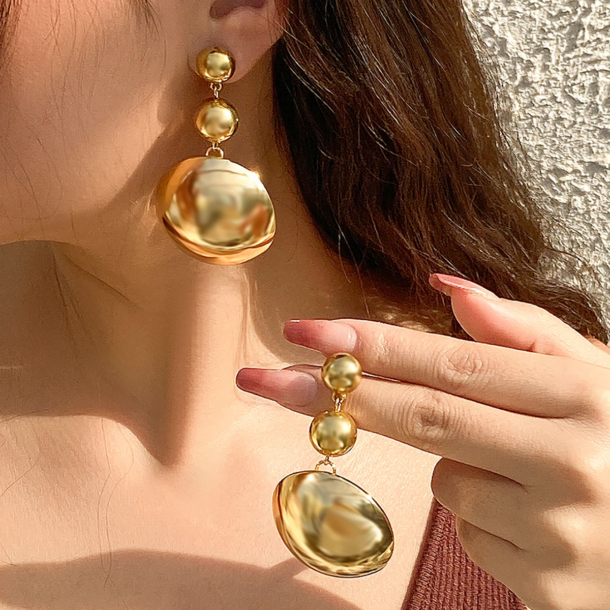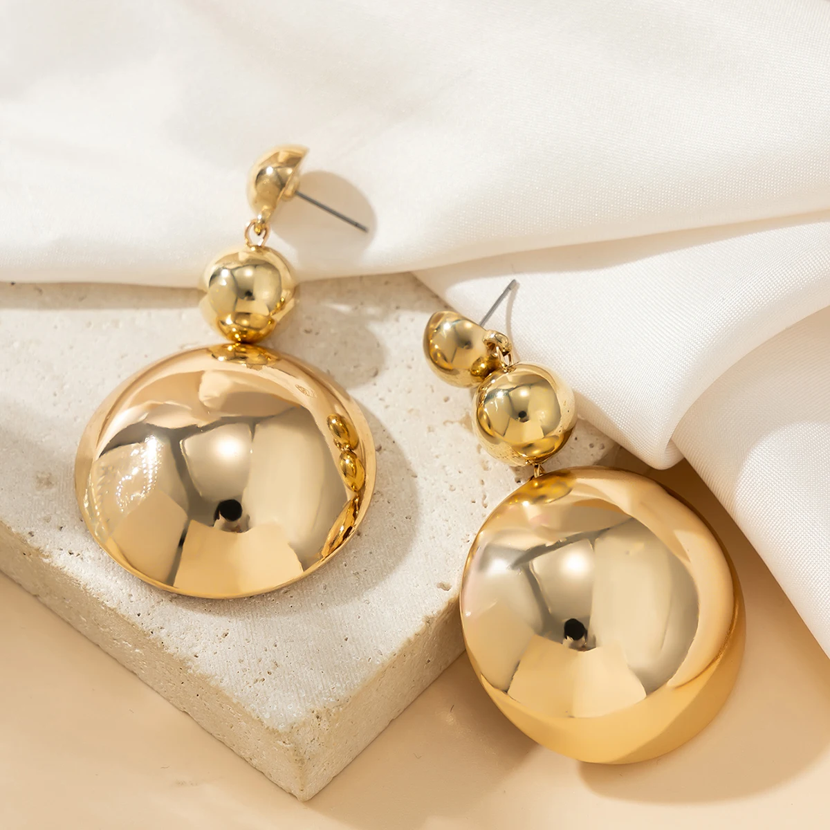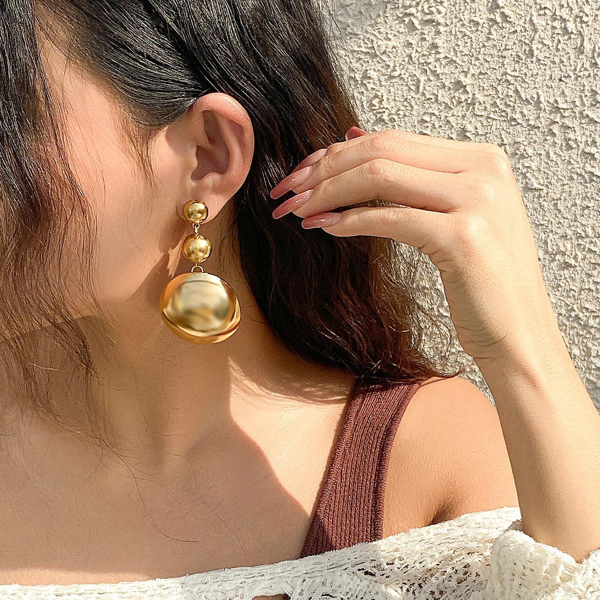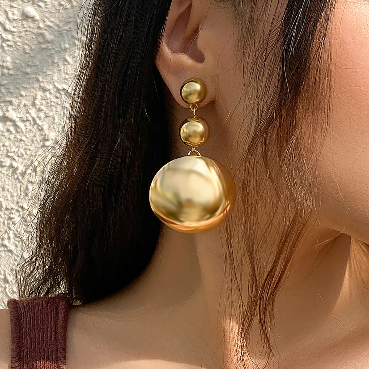 Fleepmart Exaggerated Big Ball Beads Pendant Drop Earrings Vintage Aesthetics Smooth Metal Gold Color Earrings Women Punk JewelryThere are no reviews yet