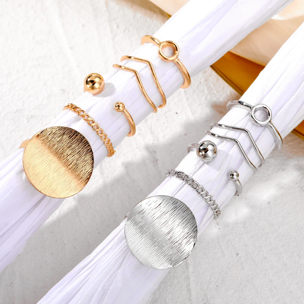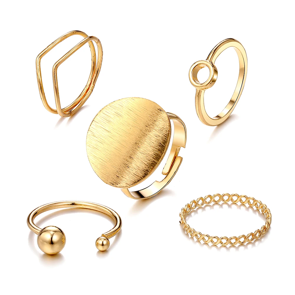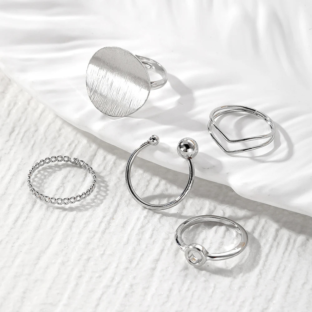 Fleepmart Exaggerated Circular Disc Women’s Ring Geometric Ball Hollowed Finger Rings Set Fashion Jewelry Gifts Accessories