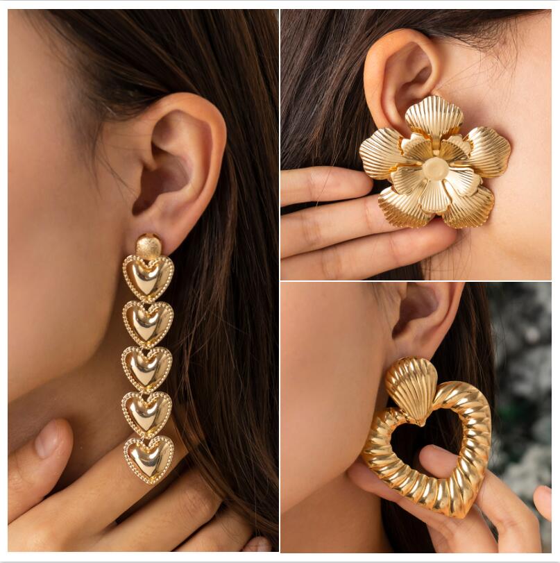 Fleepmart Exaggerated Heavy Metal Heart Shaped Tassel Drop Earrings Fashion Flower Big Earrings Punk Party For Women JewelryThere are no reviews yet
