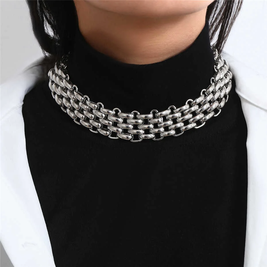 Fleepmart Exaggerated Unique Big Chunky Chain Choker Necklace Collar Steampunk Men Punk Twisted Lock Thick Iron Necklace for Women Jewelry