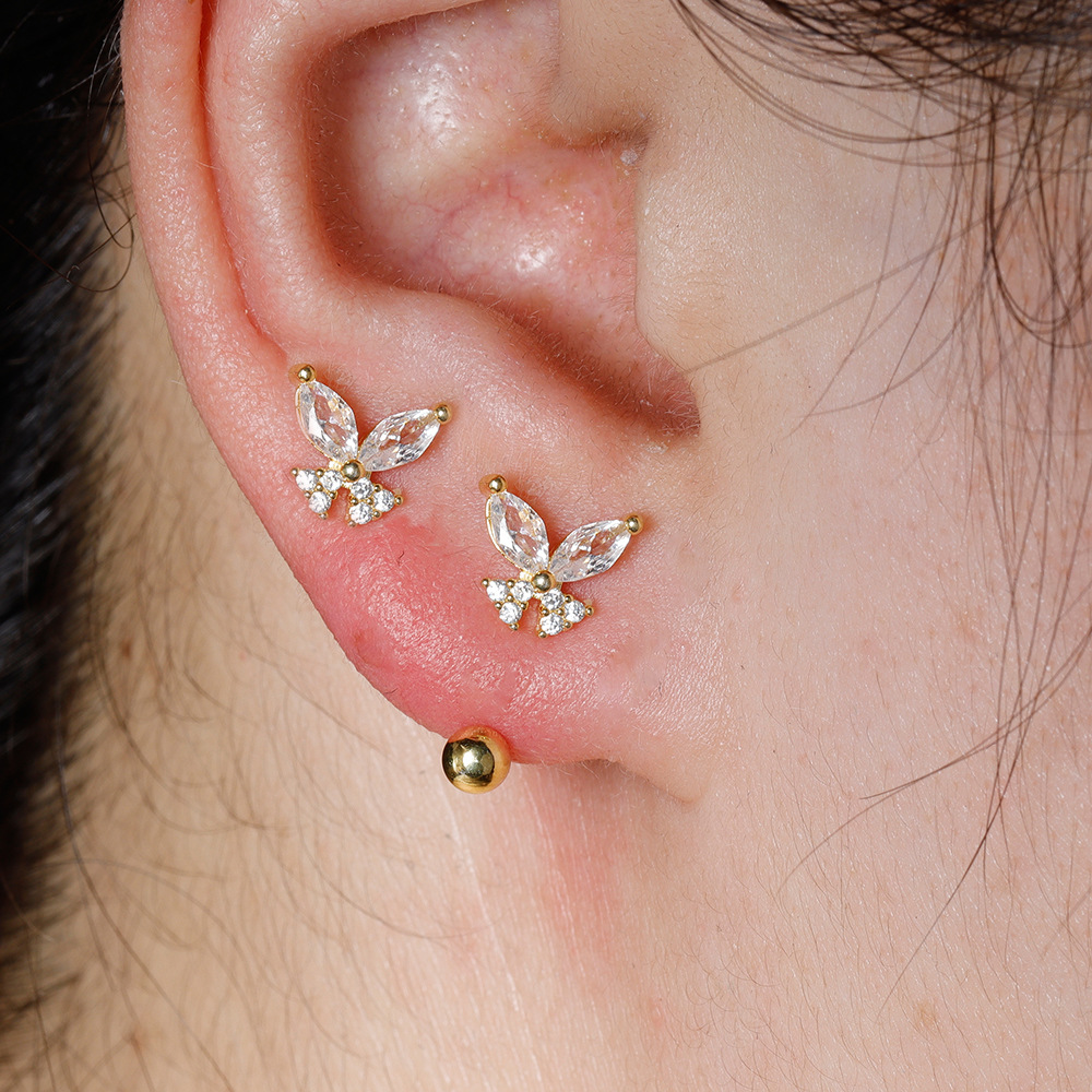 fleepmart Exquisite Butterfly Stud Earrings For Women Shiny Crystal Zircon Stainless Steel Versatile C-Shape Earring Piercing JewelryThere are no reviews yet