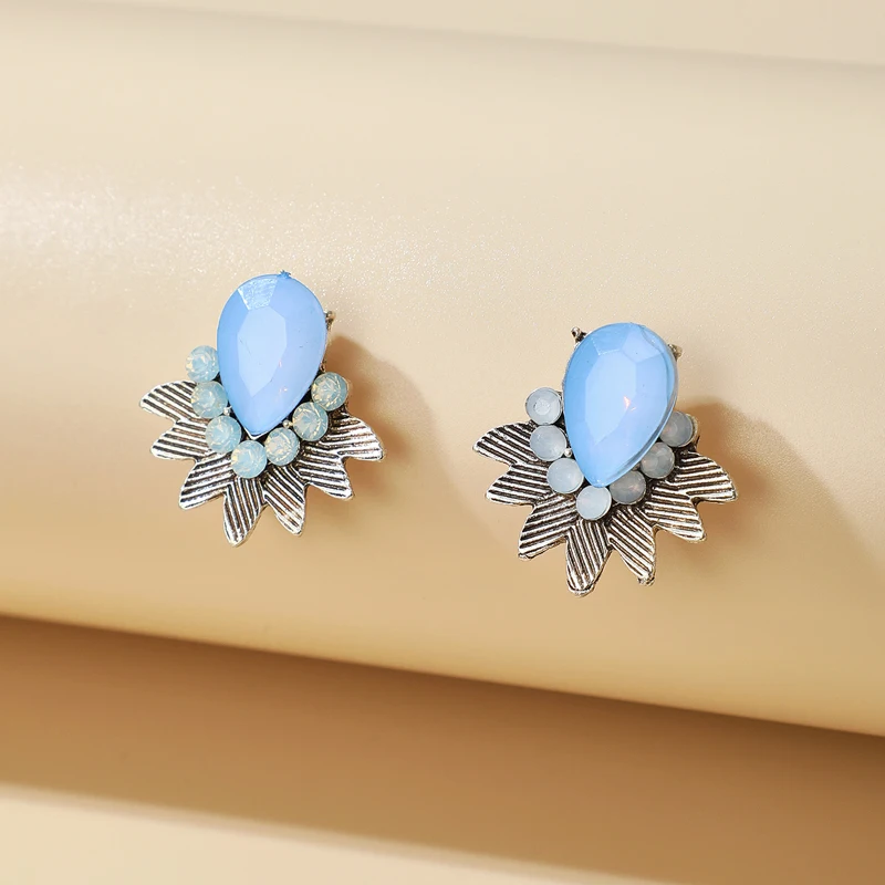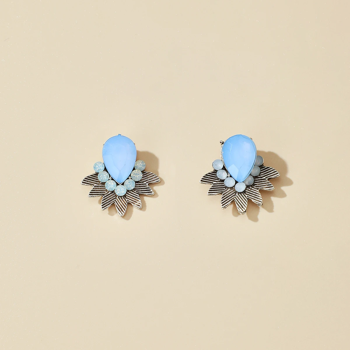 Fleepmart Exquisite Colorful Crystal Stone Stud Earrings for Women Girls Charms Water Drop Leaf Alloy Metal Party Jewelry сережки