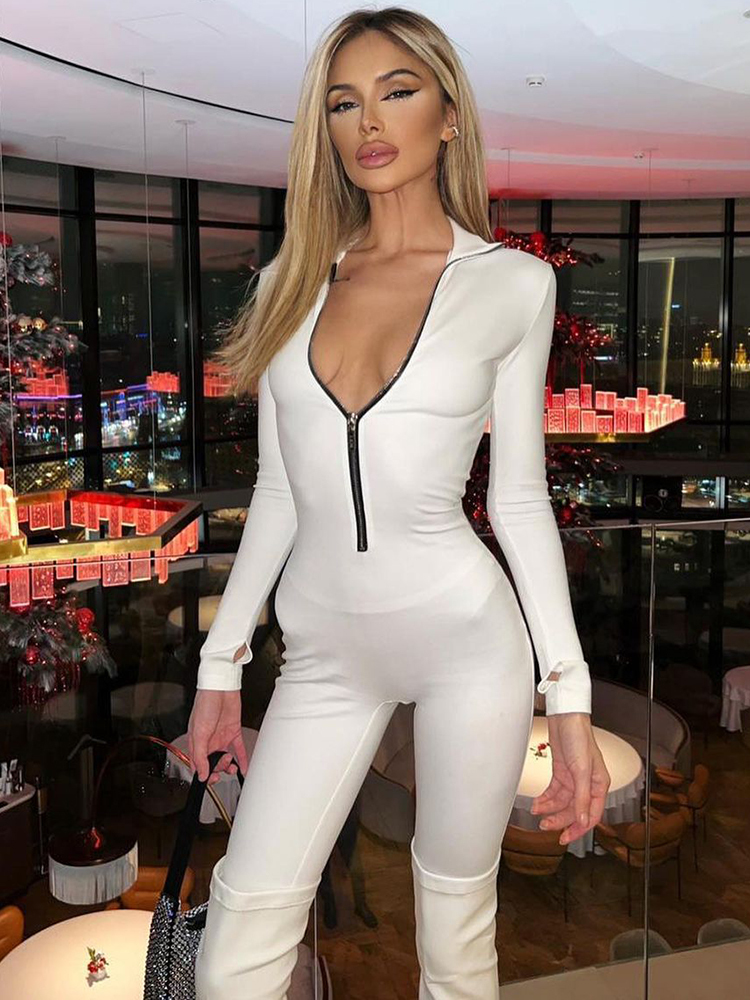 Fleepmart Fall Outfits Women Zipper Solid Long Sleeve Jumpsuit Waist Sexy Slim Femme Playsuit Fitness Party Temperament Sportswear