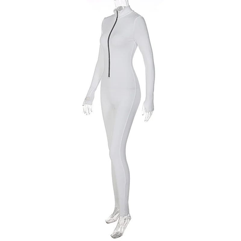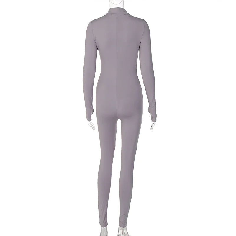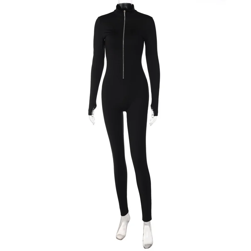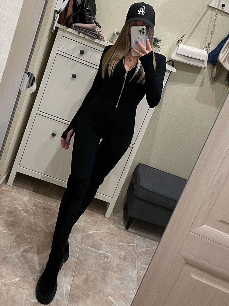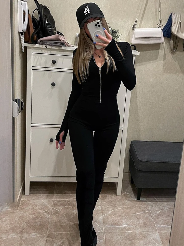 Fleepmart Fall Outfits Women Zipper Solid Long Sleeve Jumpsuit Waist Sexy Slim Femme Playsuit Fitness Party Temperament Sportswear
