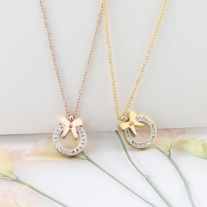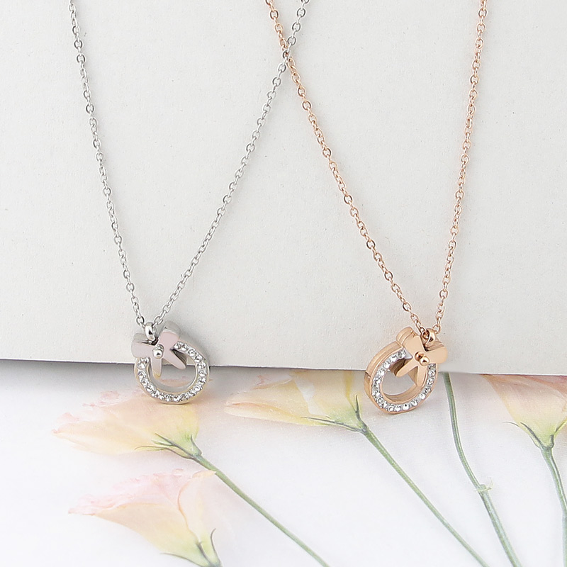 Fleepmart Fashion Bow Crystal Circle Pendant Necklace Stainless Steel Necklace for Women Gift Necklace Jewelry Free Shipping Wholesale