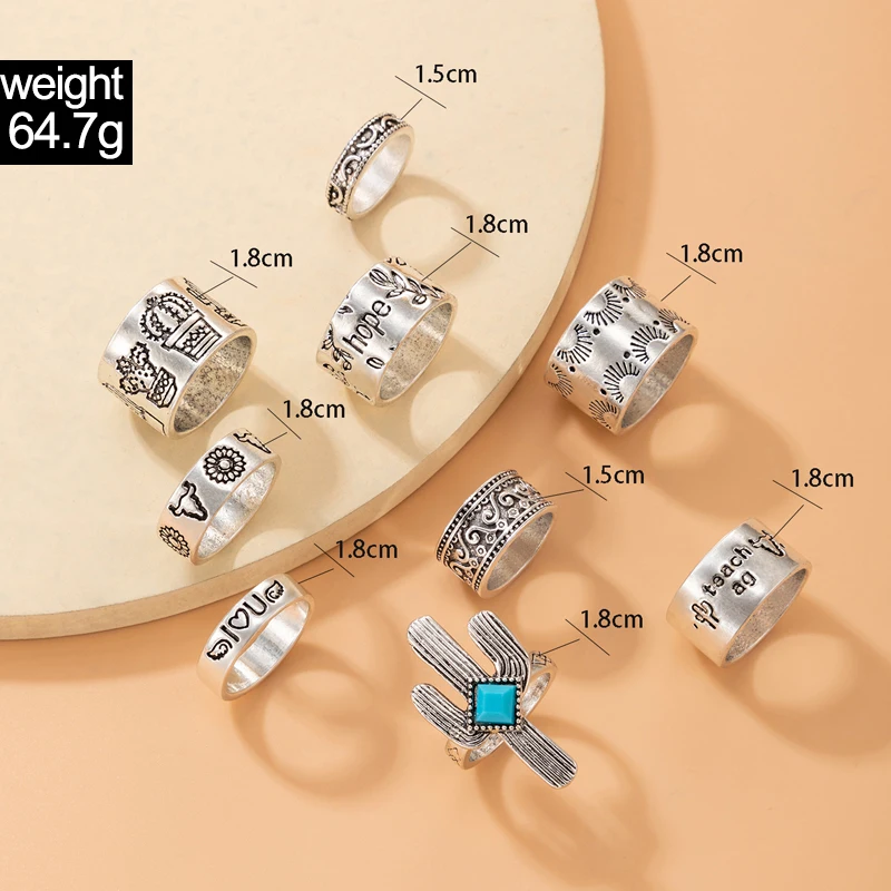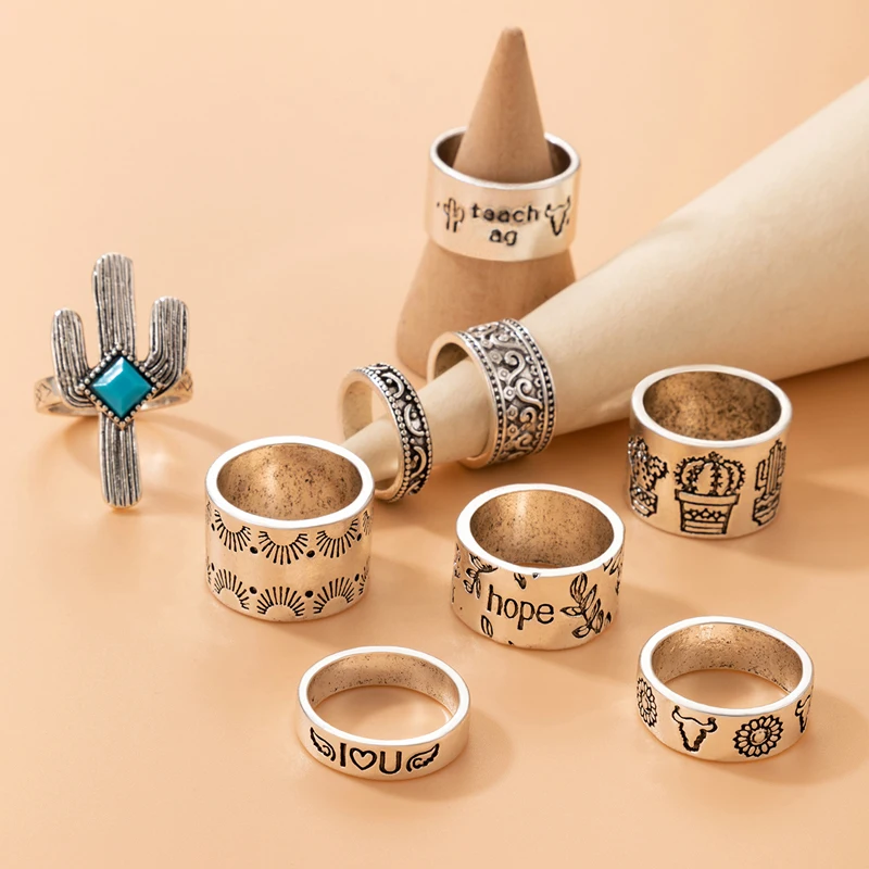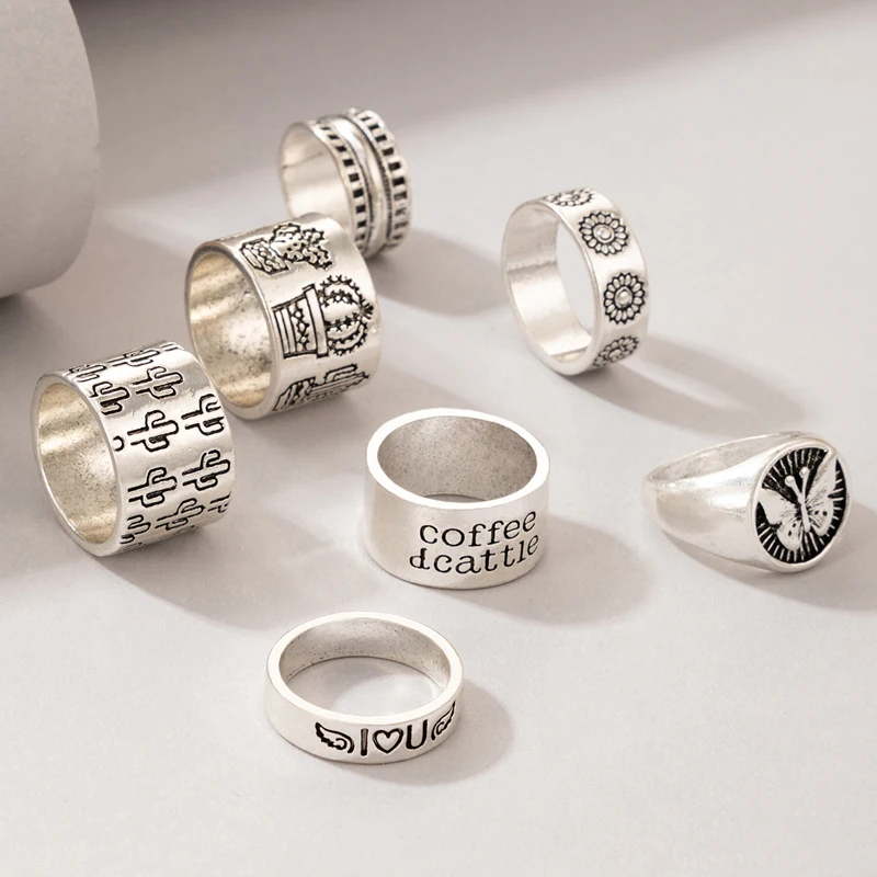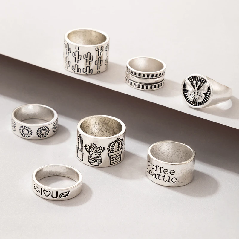 Fleepmart Fashion Butterfly Letter Ring Set for Women Men Vintage Silver Color Alloy Metal Cactus Party Jewelry Anillo 3 StyleFleepmart Fashion Butterfly Letter Ring Set for Women Men Vintage Silver Color Alloy Metal Cactus Party Jewelry Anillo 3 Style