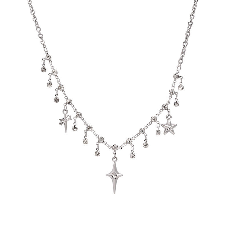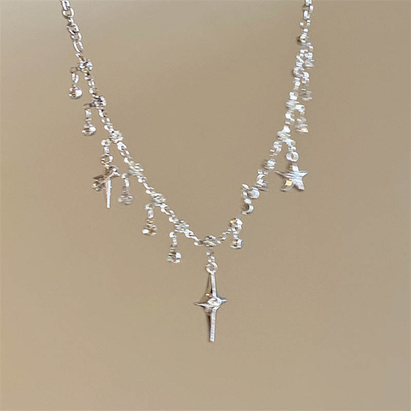 Fleepmart Fashion Chic Cross Crystal Zircon Pendant Tassel Necklace Women Girls Clavicle Chain Accessories Aesthetic Y2K Jewelry