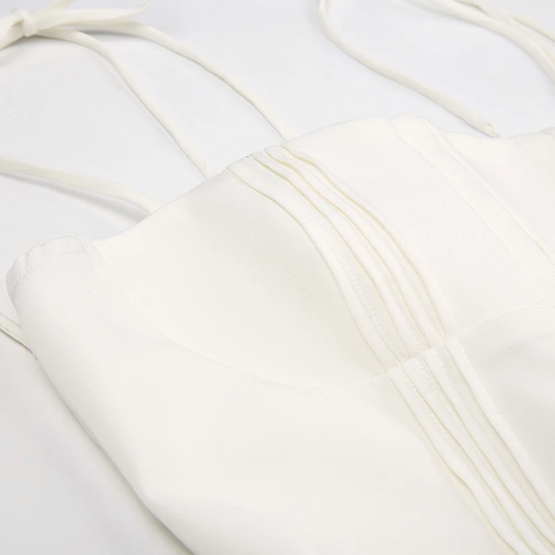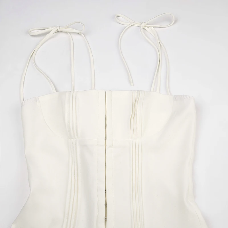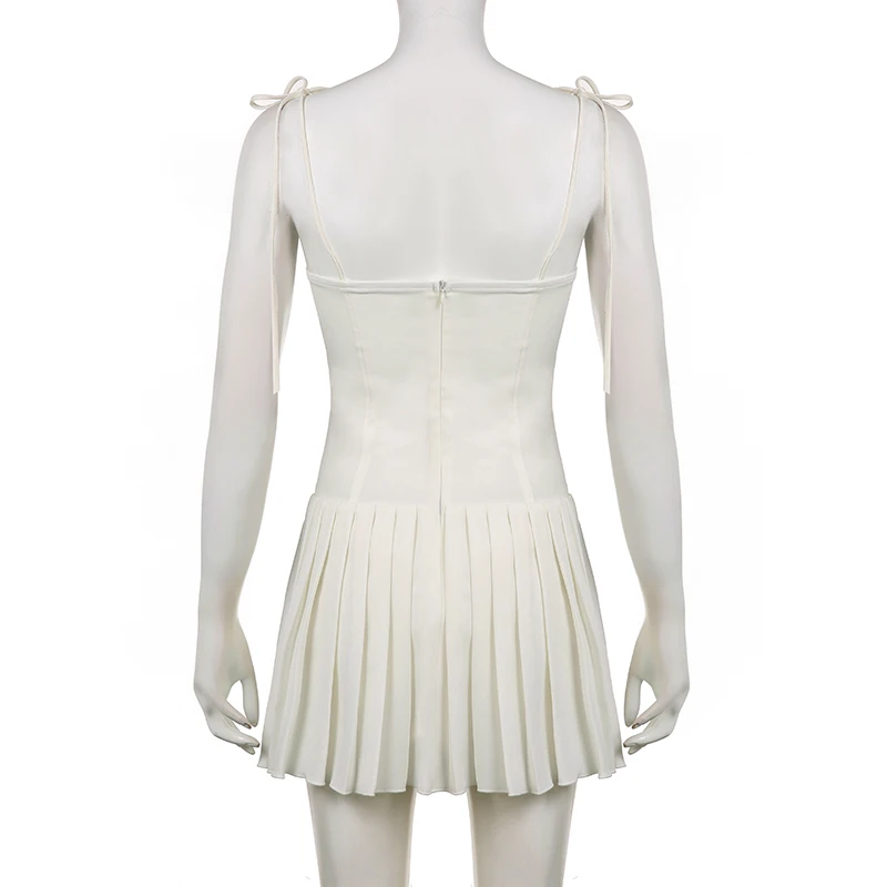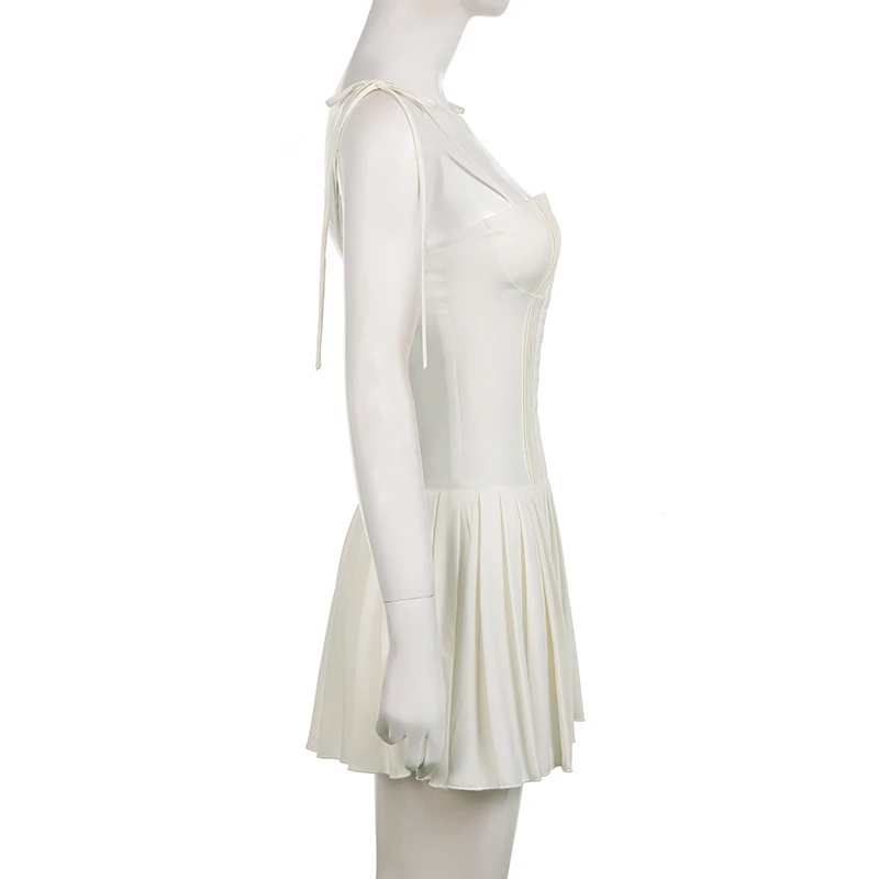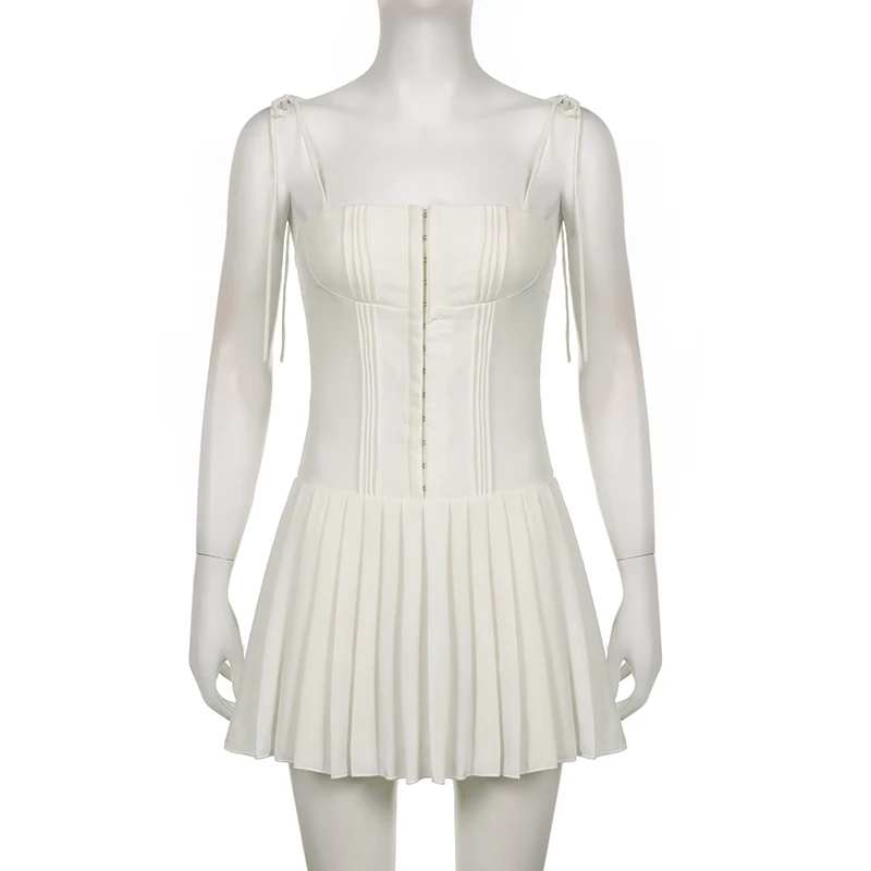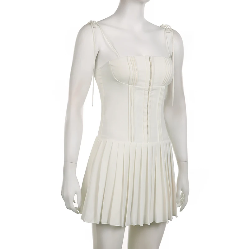 Fleepmart Fashion Chic Fold White Pleated Dress Mini Pins Up Birthday Party Sundress Strappy Corset Sexy Dresses Summer Female