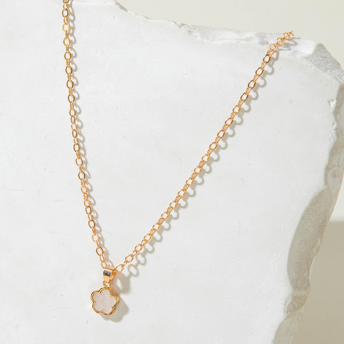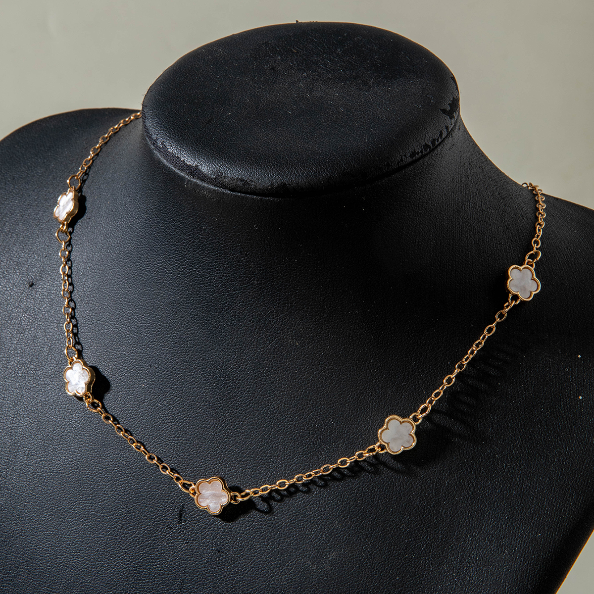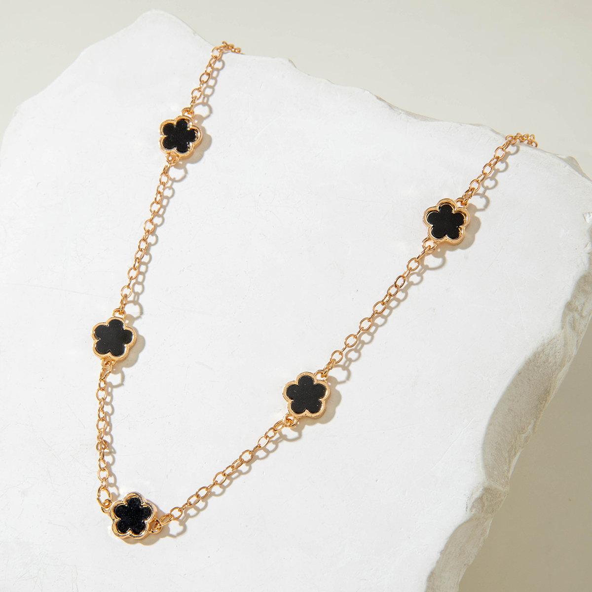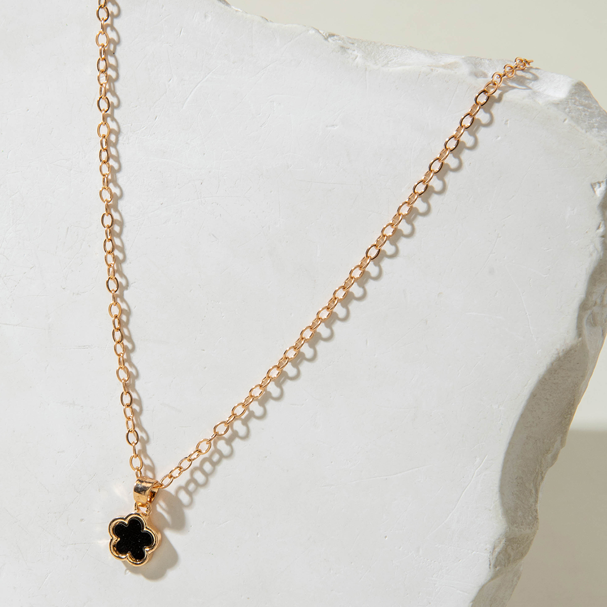 Fleepmart Fashion Classic colorful Jewelry Alloy Five Leaf Clover Pendant Necklace Female Tail Chain Adjustable Holiday Party Gift