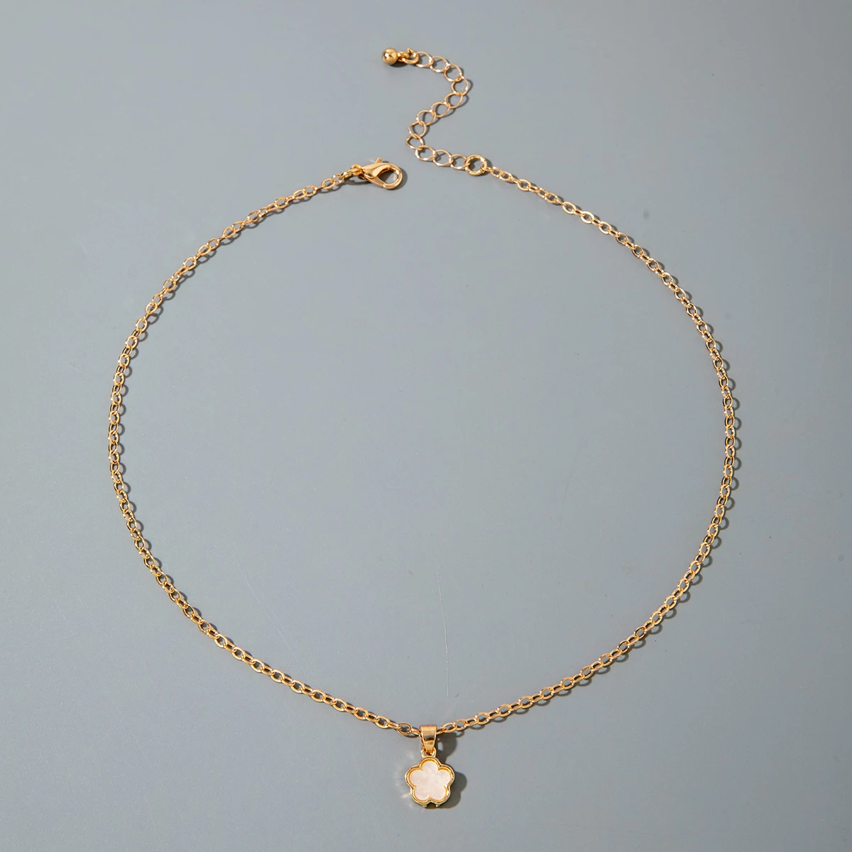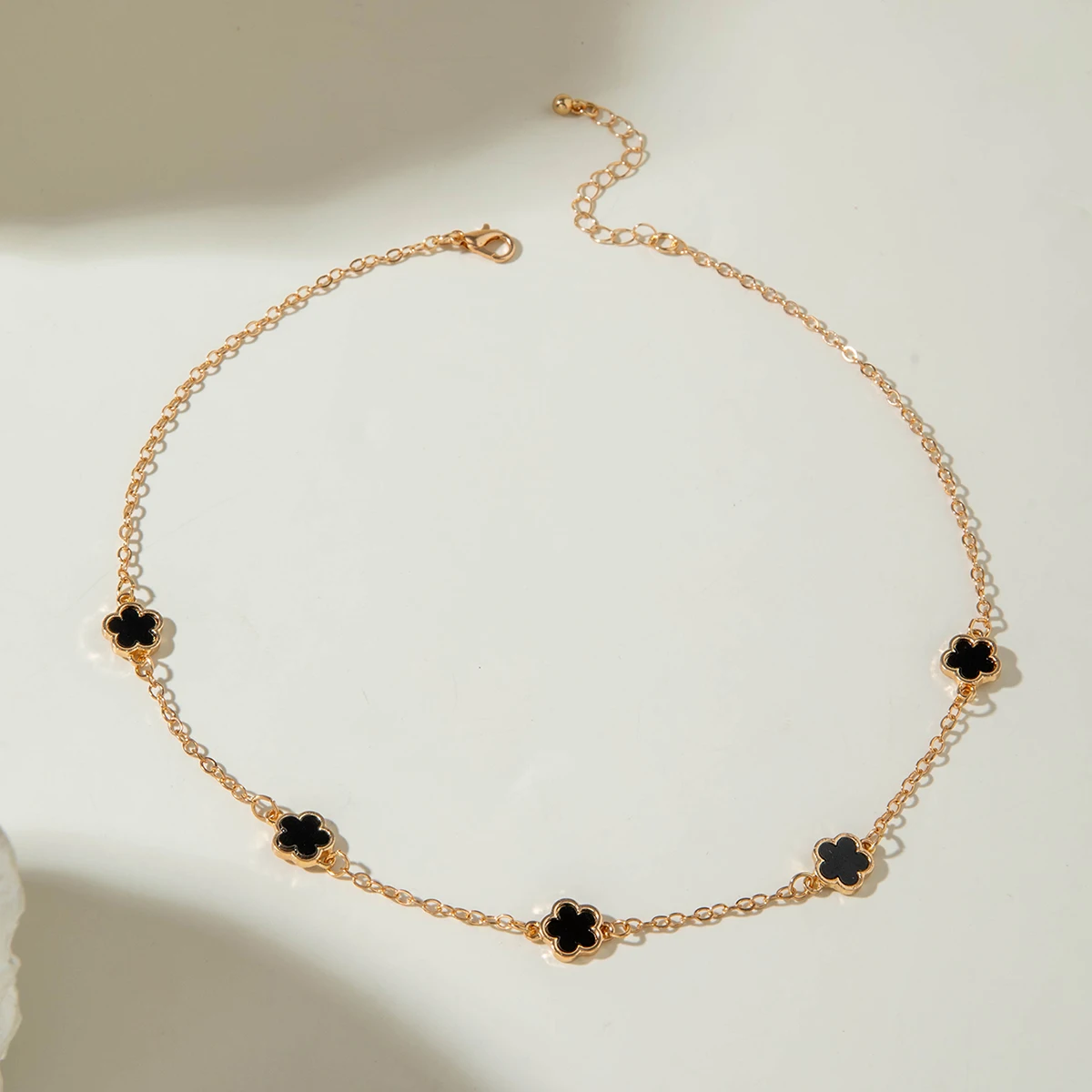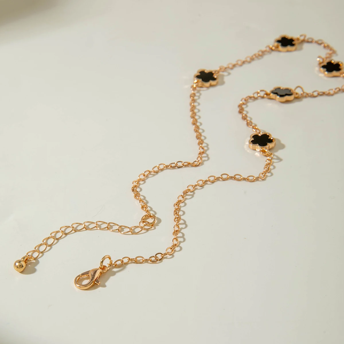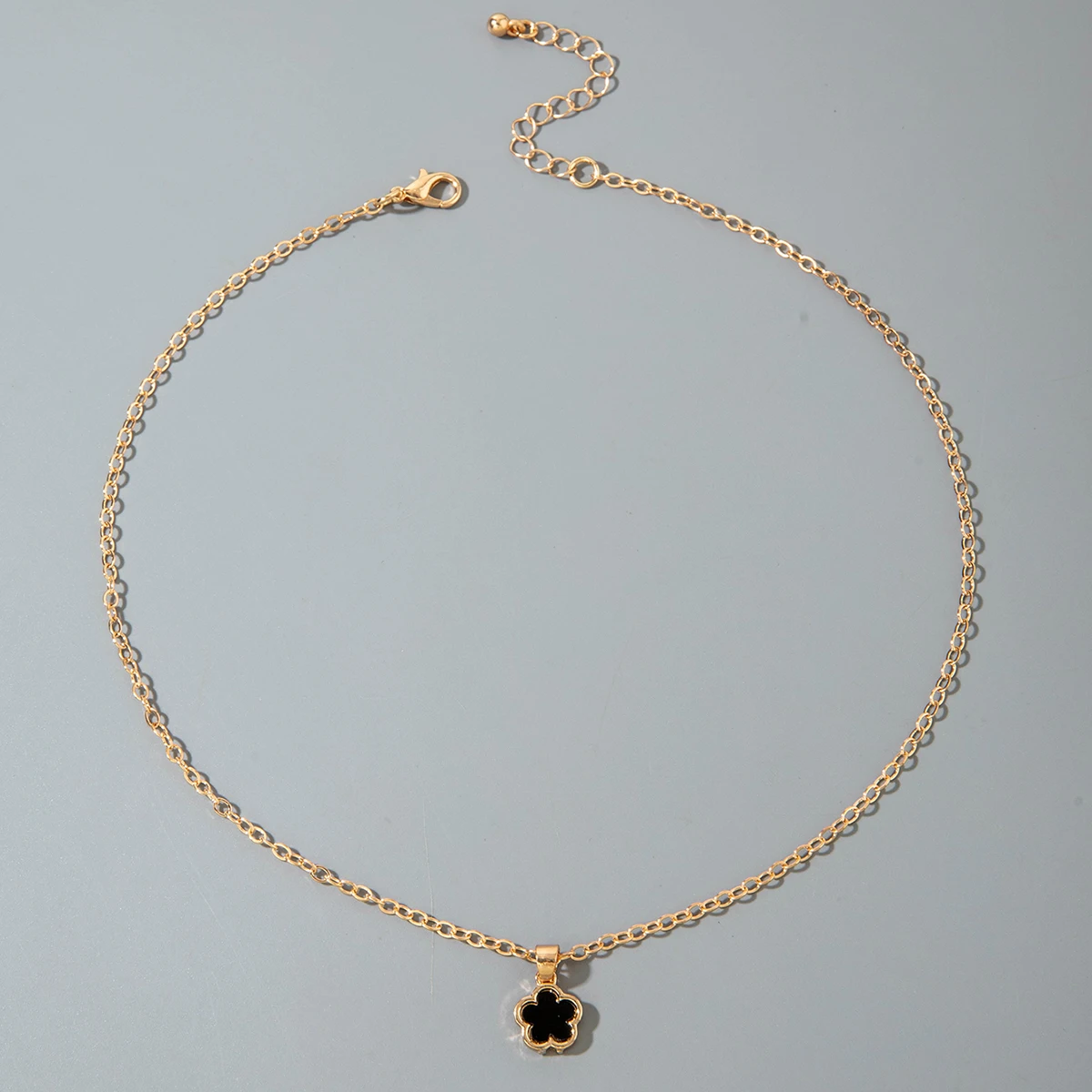 Fleepmart Fashion Classic colorful Jewelry Alloy Five Leaf Clover Pendant Necklace Female Tail Chain Adjustable Holiday Party Gift