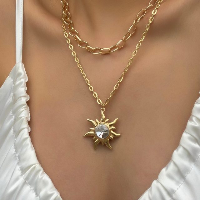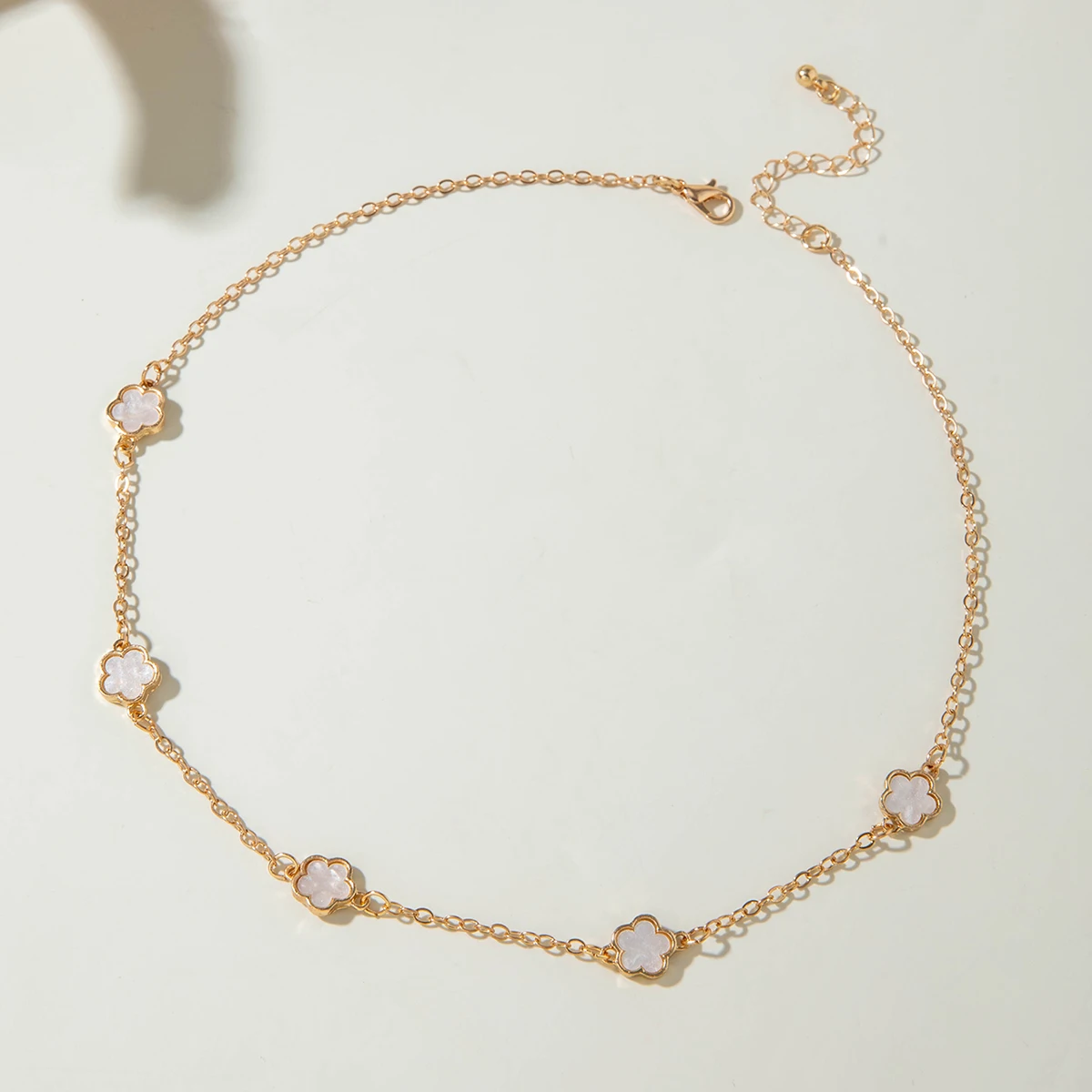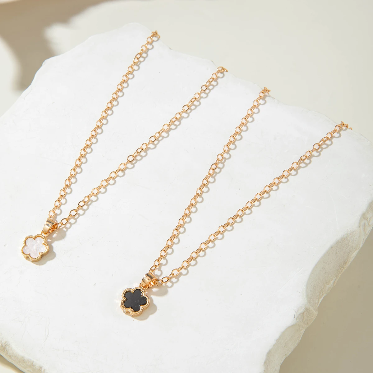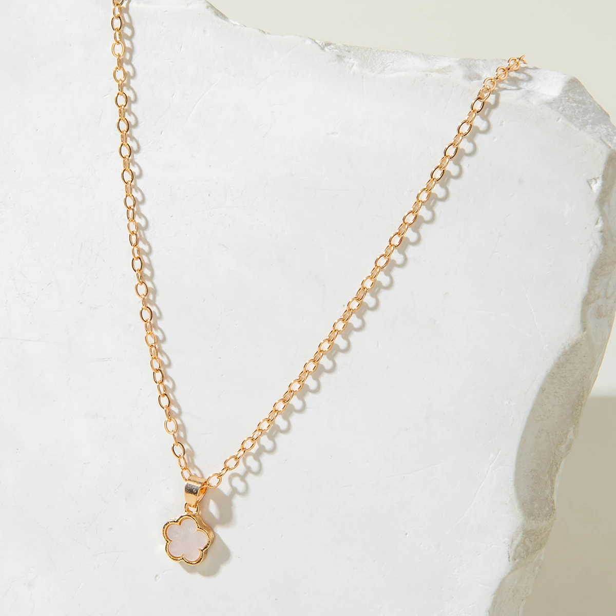 Fleepmart Fashion Classic colorful Jewelry Alloy Five Leaf Clover Pendant Necklace Female Tail Chain Adjustable Holiday Party Gift