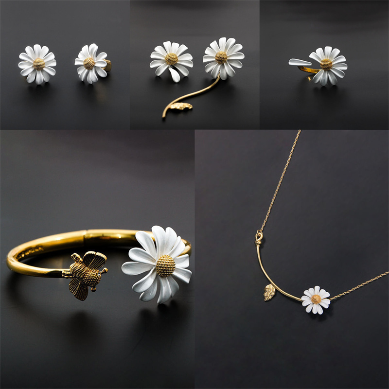 Fleepmart Fashion Cute Small Daisy Flowers Stud Earrings For Women Girls Sweet Statement Asymmetrical Earring Party Jewelry Gifts