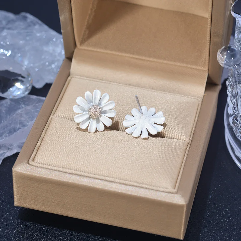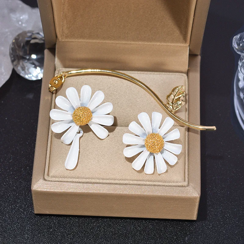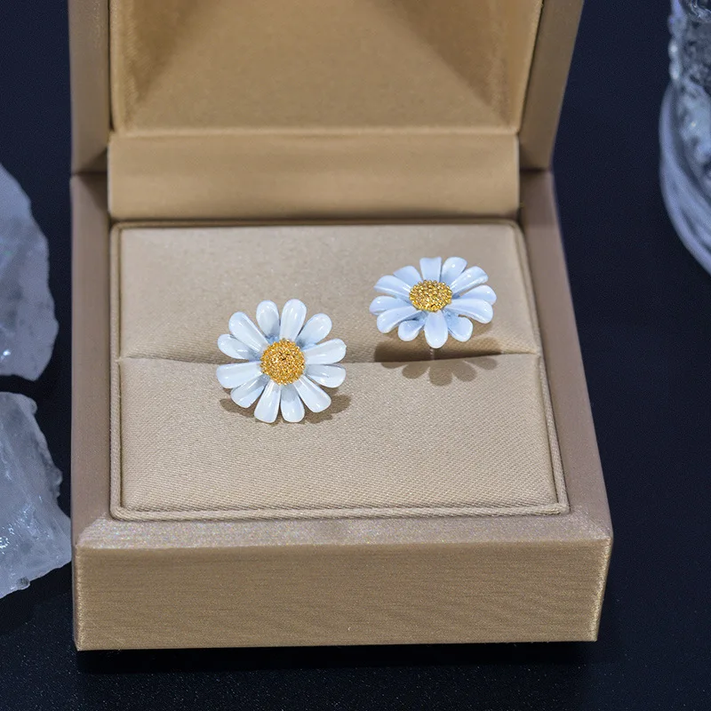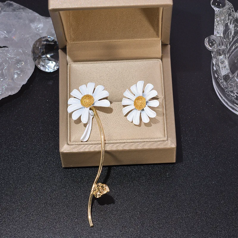 Fleepmart Fashion Cute Small Daisy Flowers Stud Earrings For Women Girls Sweet Statement Asymmetrical Earring Party Jewelry Gifts