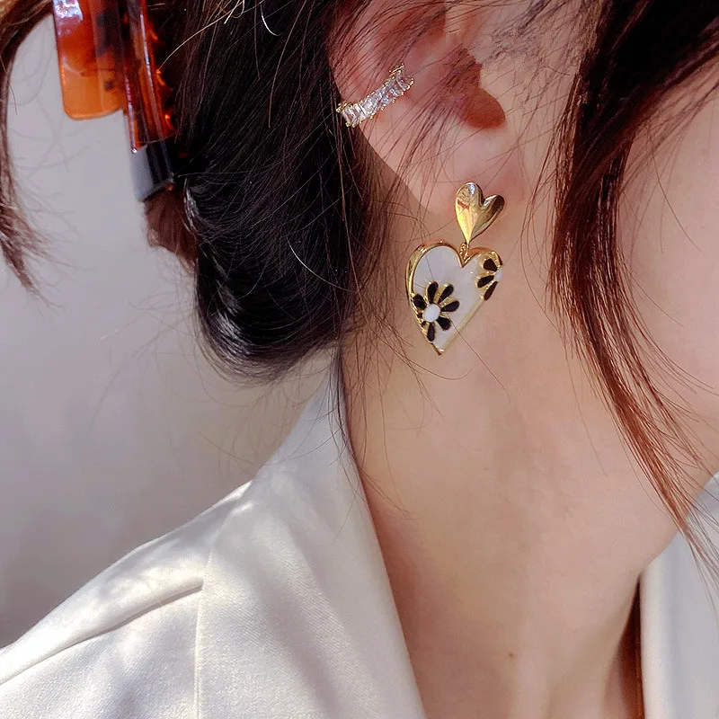fleepmart Fashion Daisy Flower Heart Earrings For Women 2022 New Temperament Designers Dangle Earring