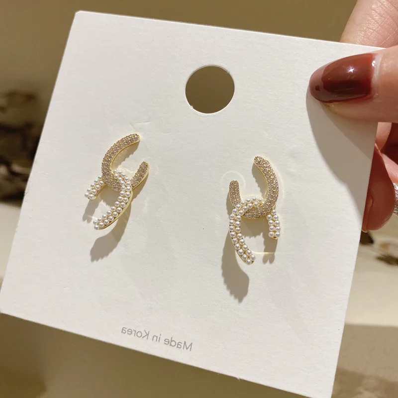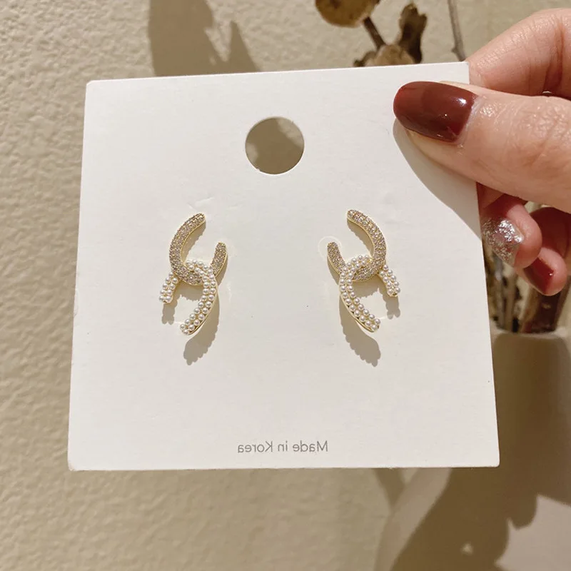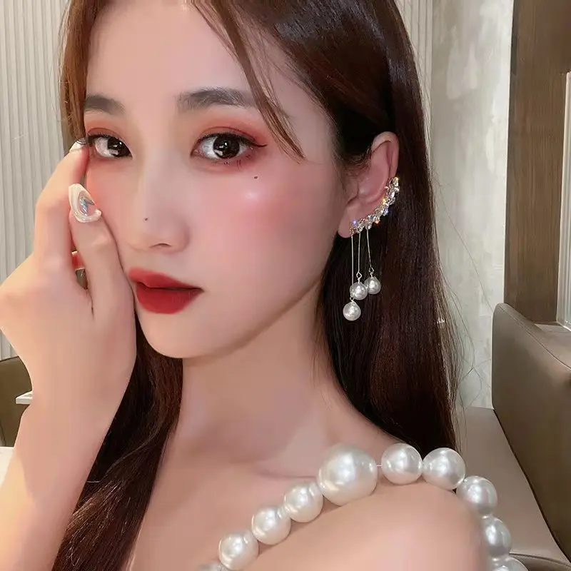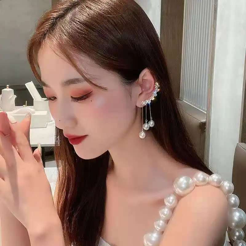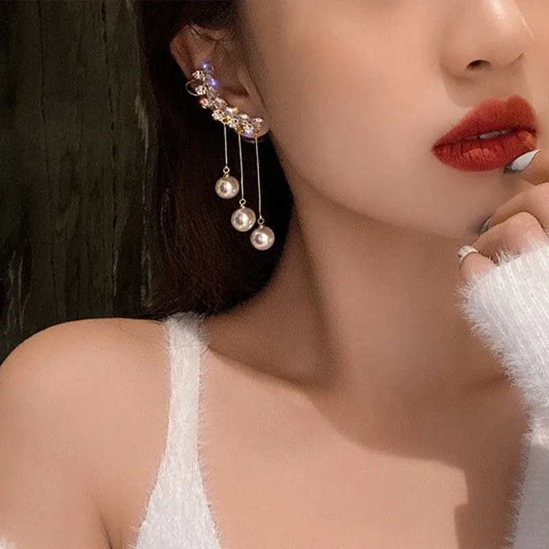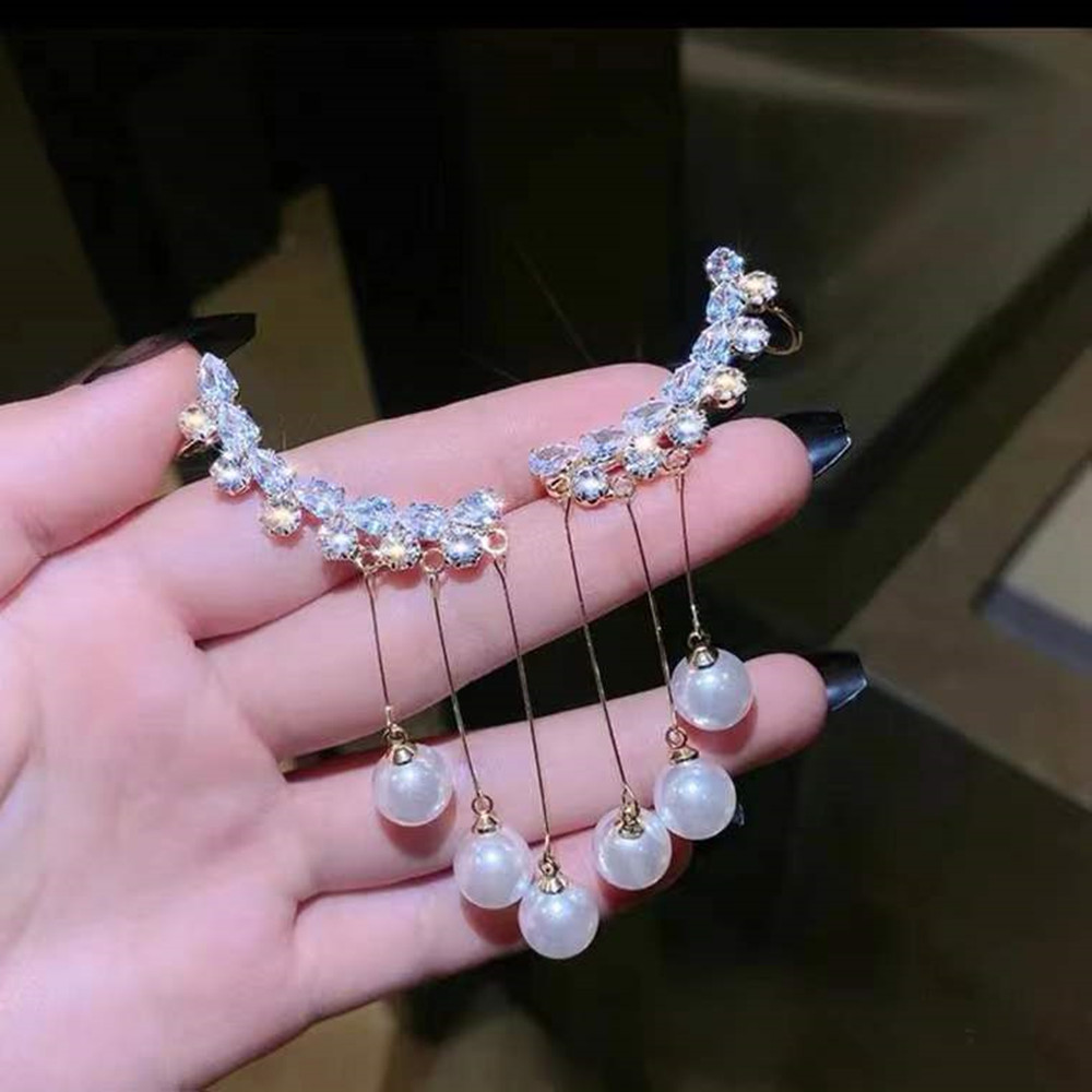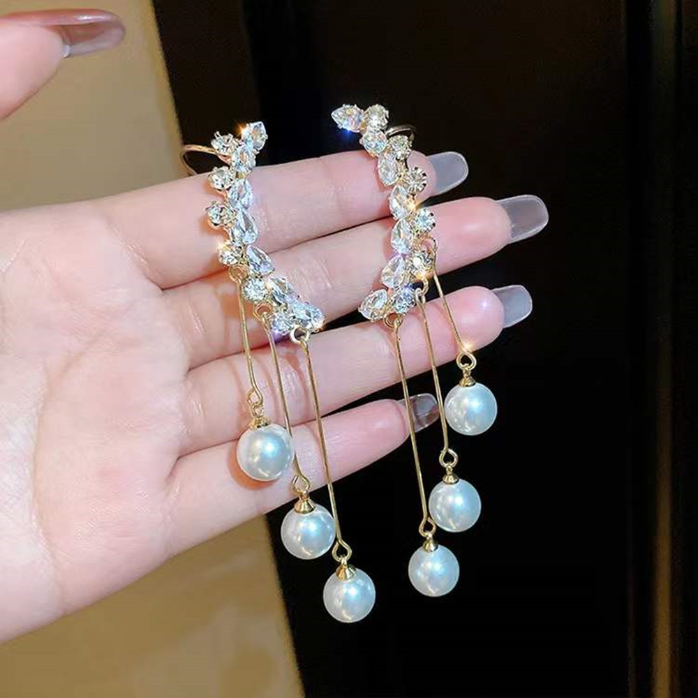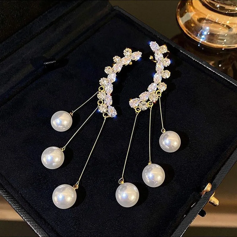 Fleepmart Fashion Design Zircon Earring For Women Light Luxury Web Celebrity Temperament Tassels Pearl Earring Jewelry