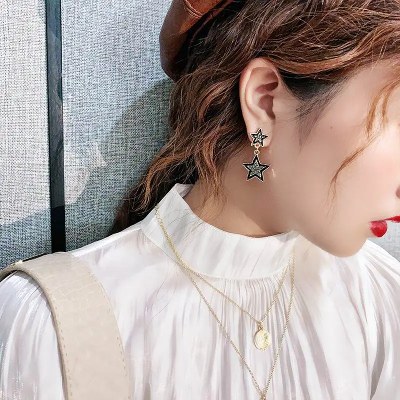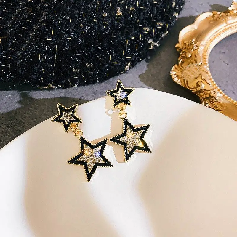 fleepmart Fashion Double Star Earrings With Stones New Jewelry Delicate Simple Earings