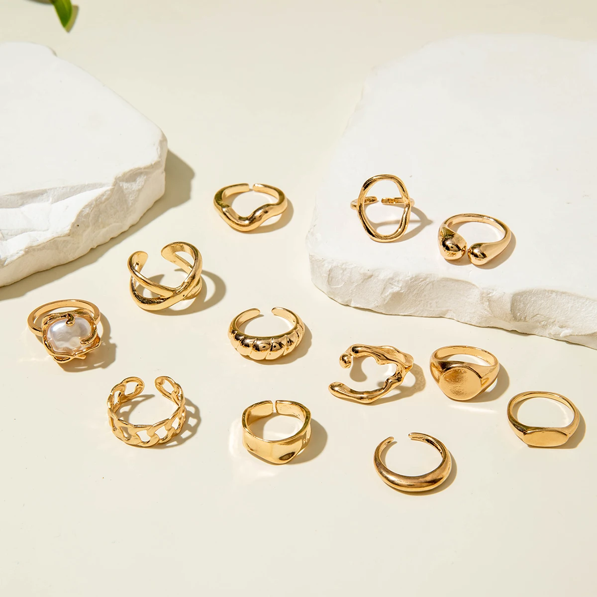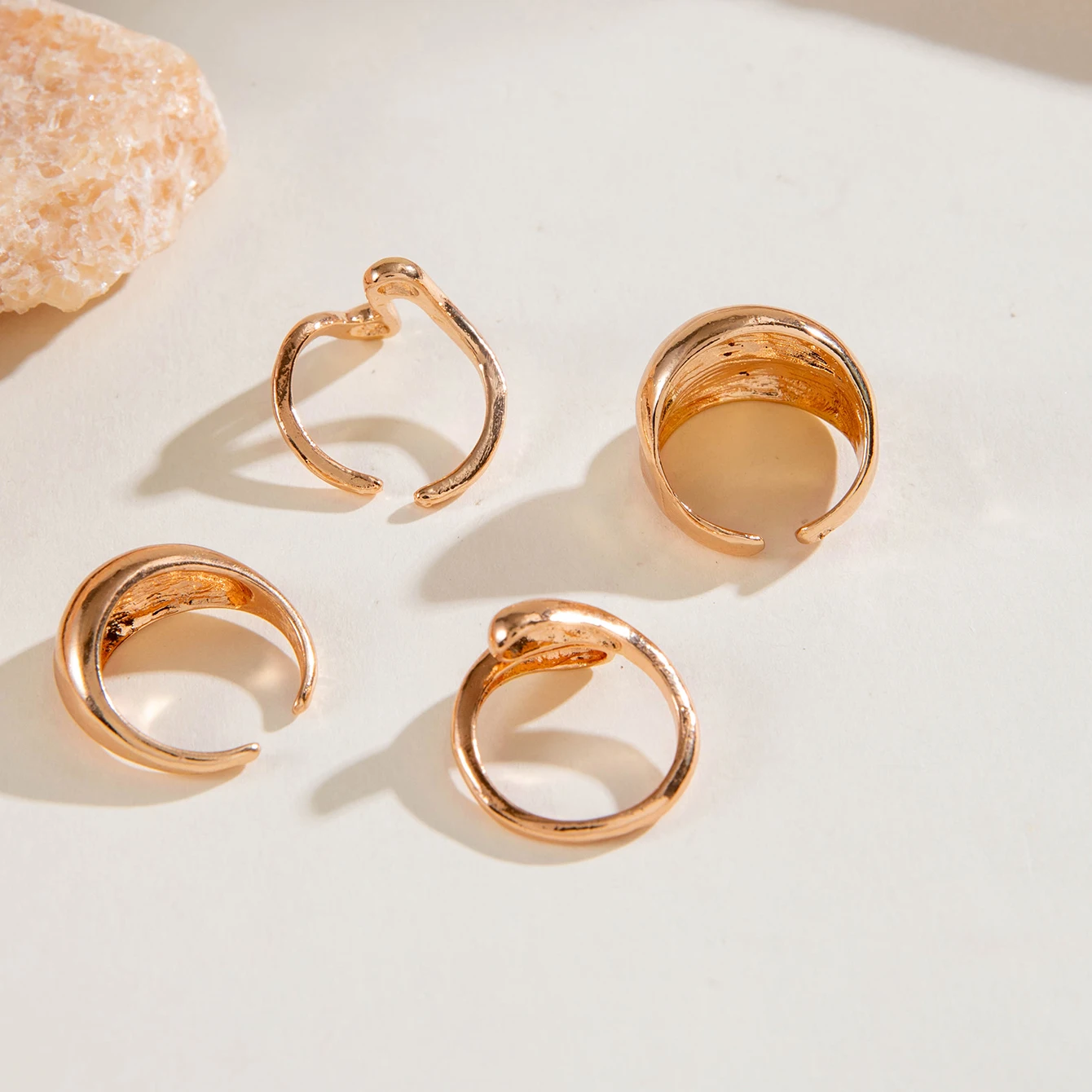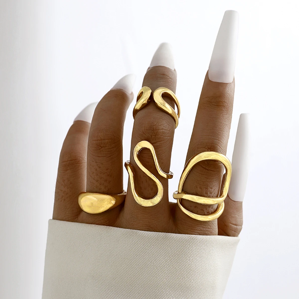 Fleepmart Fashion Elegant Circle Geometry Opening Joint Rings Set for Women Men Trendy Alloy Heavy Metal Party Wedding Jewelry