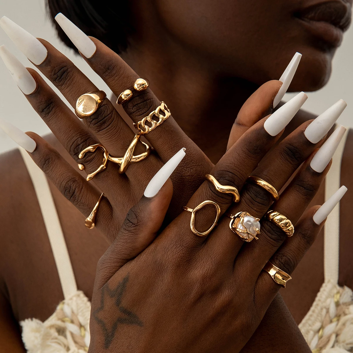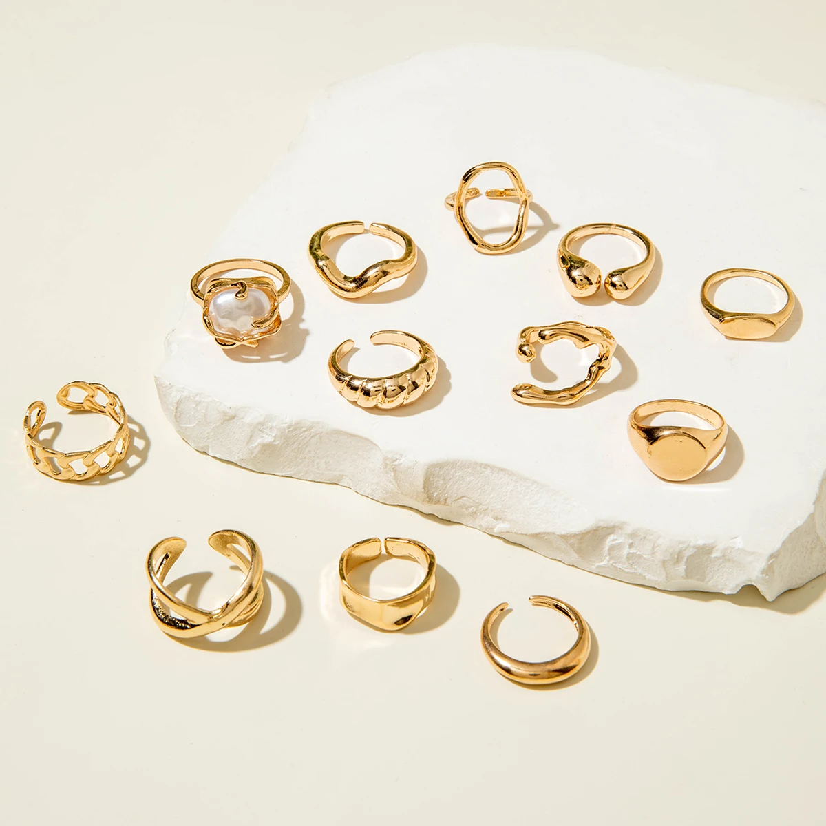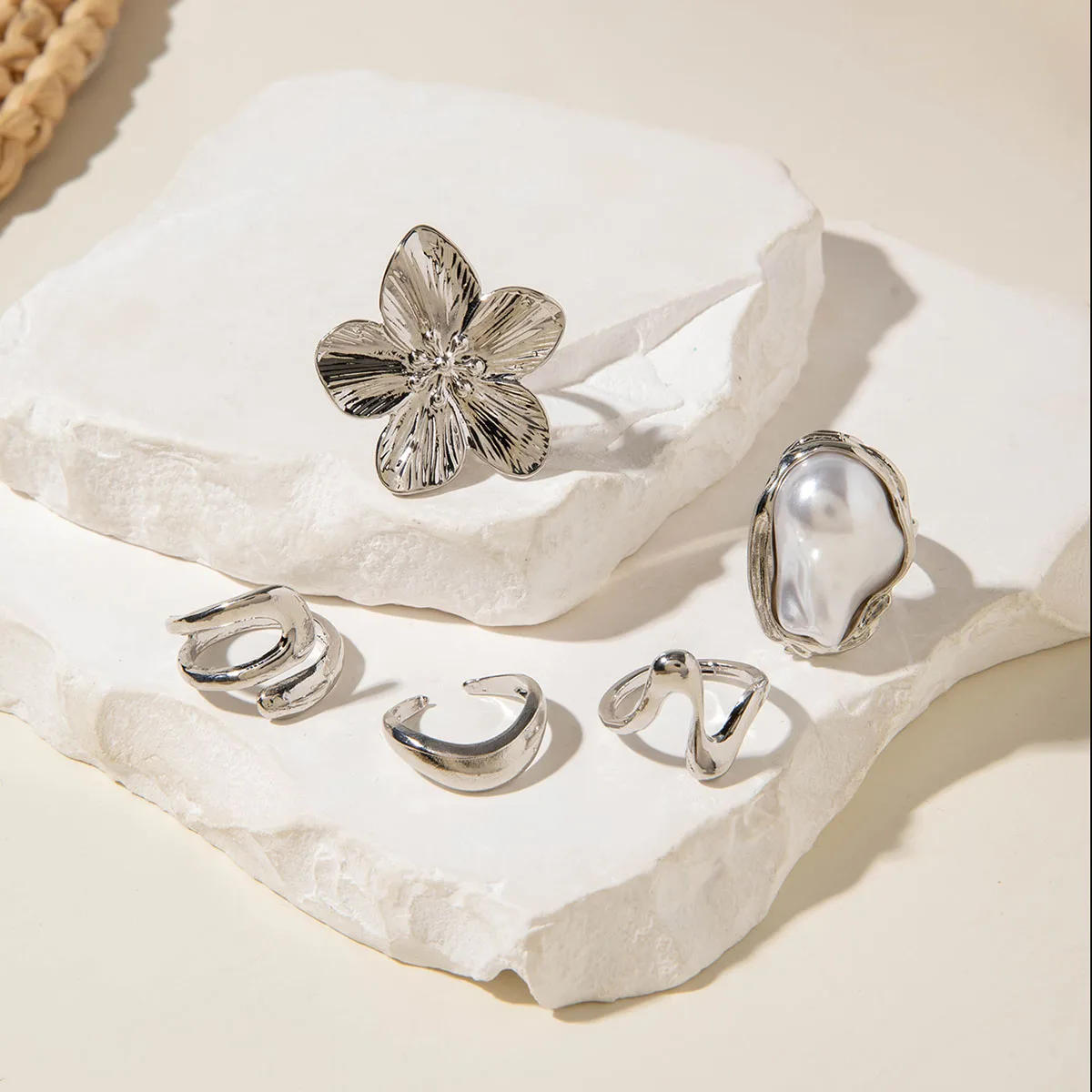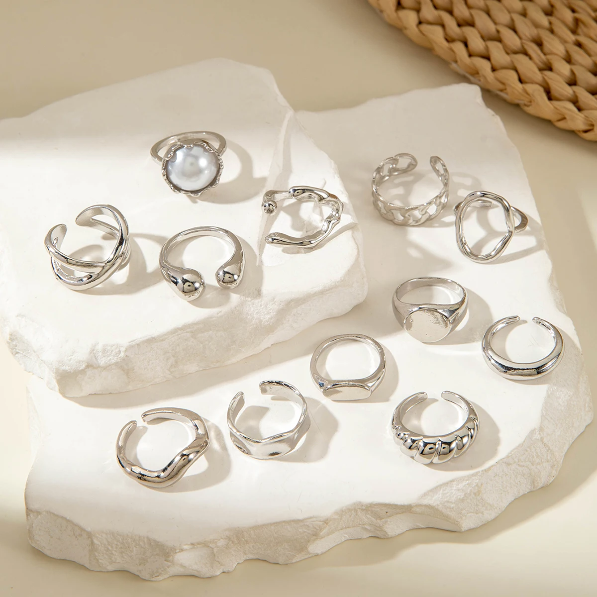 Fleepmart Fashion Elegant Circle Geometry Opening Joint Rings Set for Women Men Trendy Alloy Heavy Metal Party Wedding Jewelry