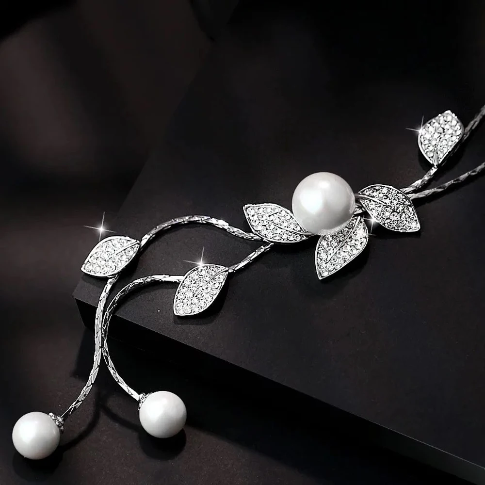 Fleepmart Fashion elegant Simulated Pearl Choker Necklaces for Women Silver Color Chain Long Necklace Pendant Jewelry Accessories Trendy