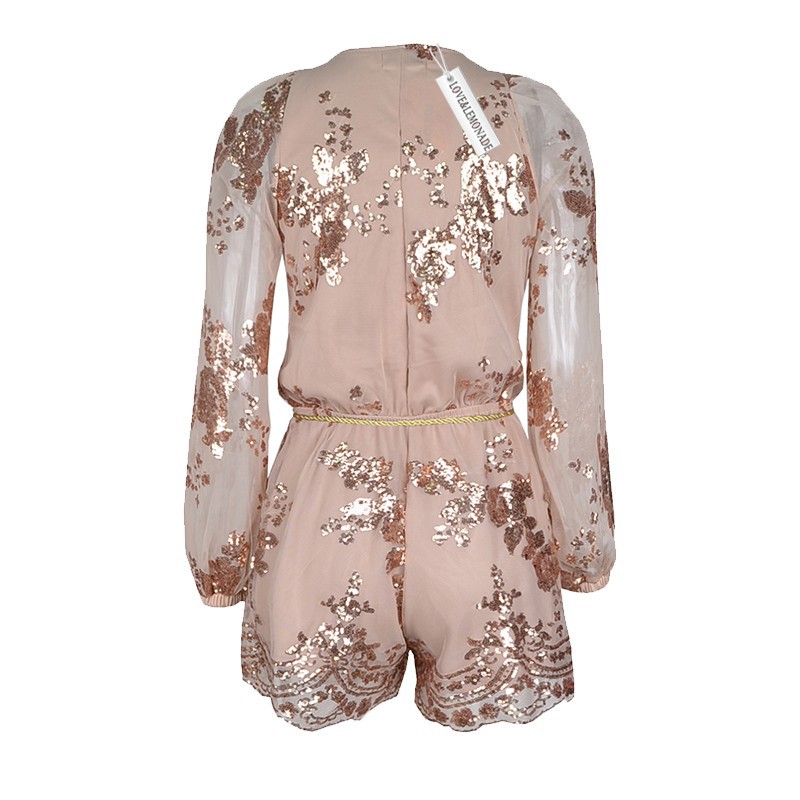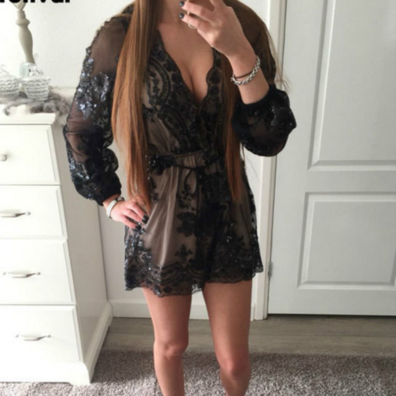 Fleepmart Fashion Elegant Women Jumpsuit Sexy Bodysuit Sequin Rompers Ladys Jumpsuit Playsuit Long Sleeve Overalls Vestidos