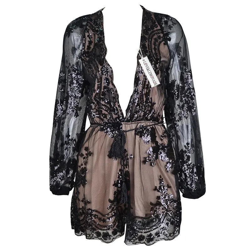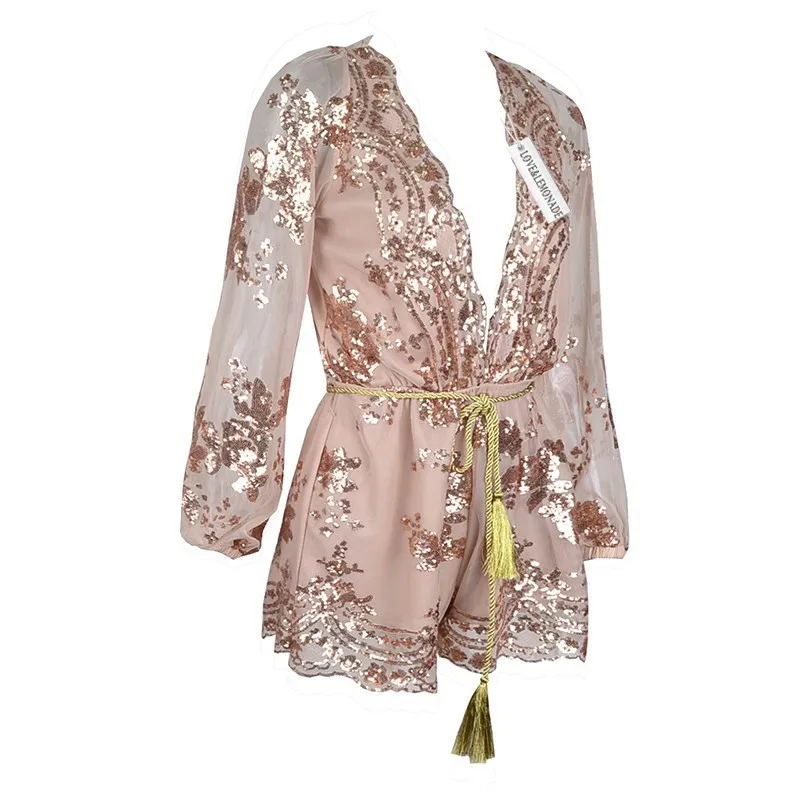 Fleepmart Fashion Elegant Women Jumpsuit Sexy Bodysuit Sequin Rompers Ladys Jumpsuit Playsuit Long Sleeve Overalls Vestidos