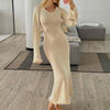 Fleepmart Fashion Flared Sleeves Lace Hem Maxi Dress Lady Elegant Solid Back Lace Up Long Dress Female Casual Streetwear Club Party Robes