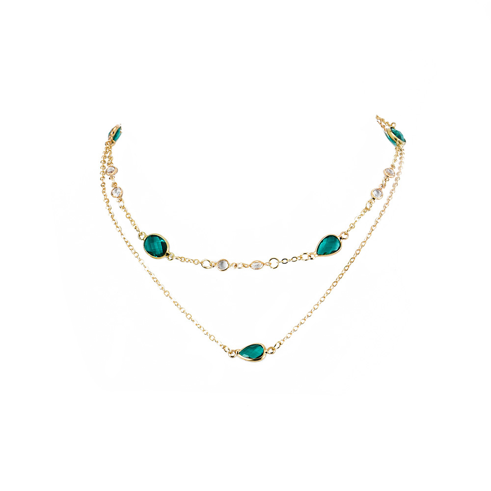 Fleepmart Fashion Gold Green Water Drops Stone Pendant Necklaces For Women Necklace Multilevel Female Boho Vintage Jewelry Gift